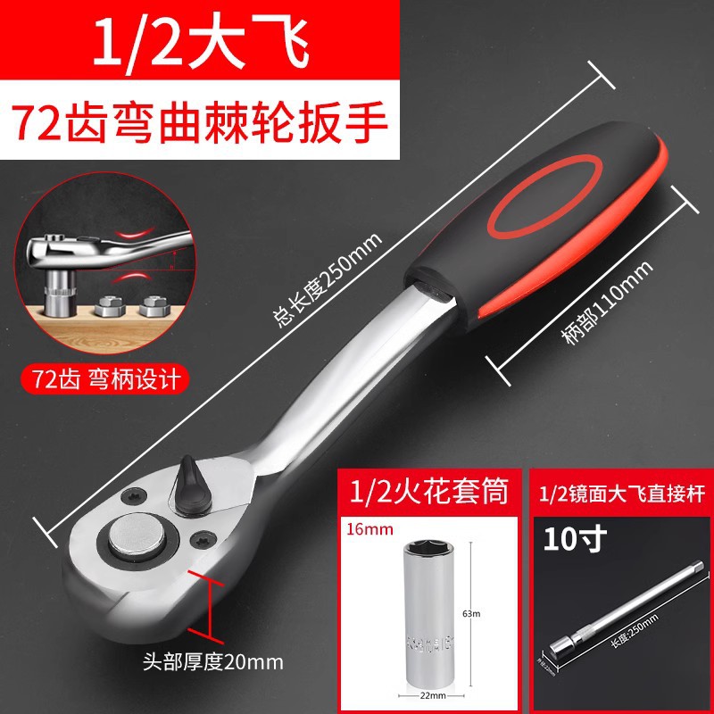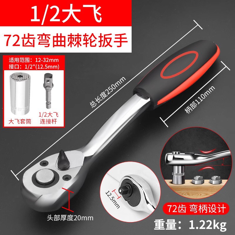 • 1/2 곡선 핸들 래칫 렌치-72 이빨 비행