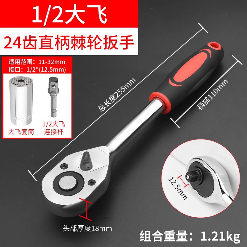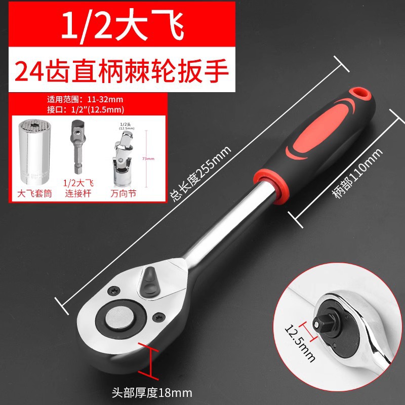 • 1/2 직선 핸들 래칫 렌치 + 범용 소켓 (11-32mm)