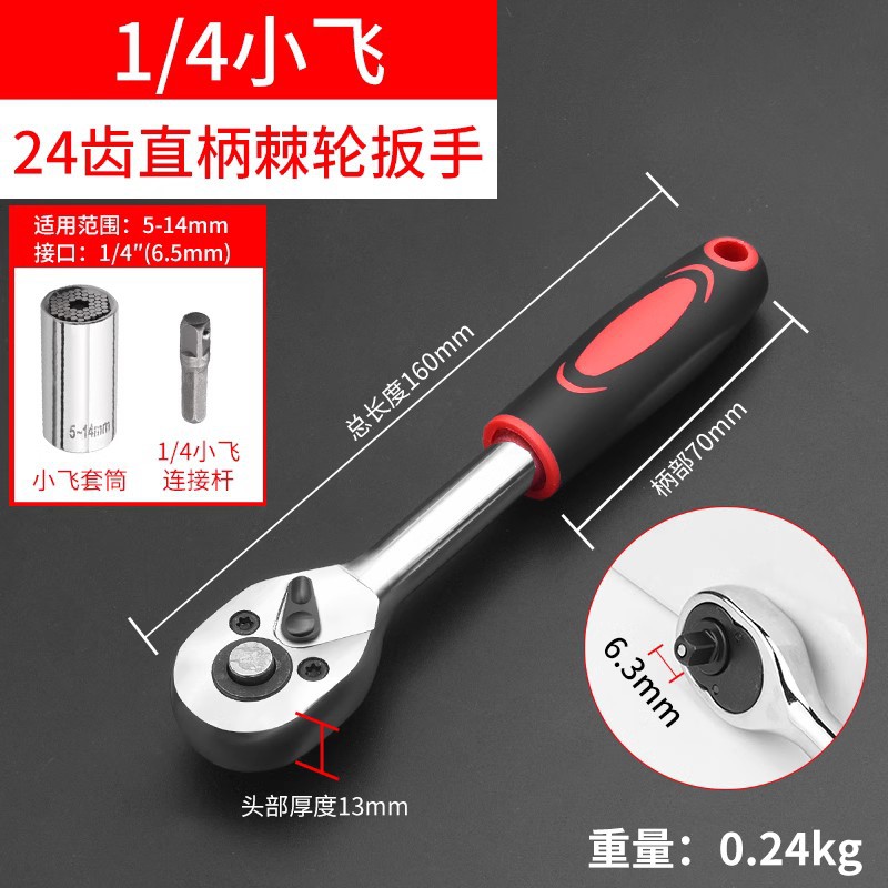 • 1/4 직선 핸들 래칫 렌치 + 범용 소켓 (5-14mm)