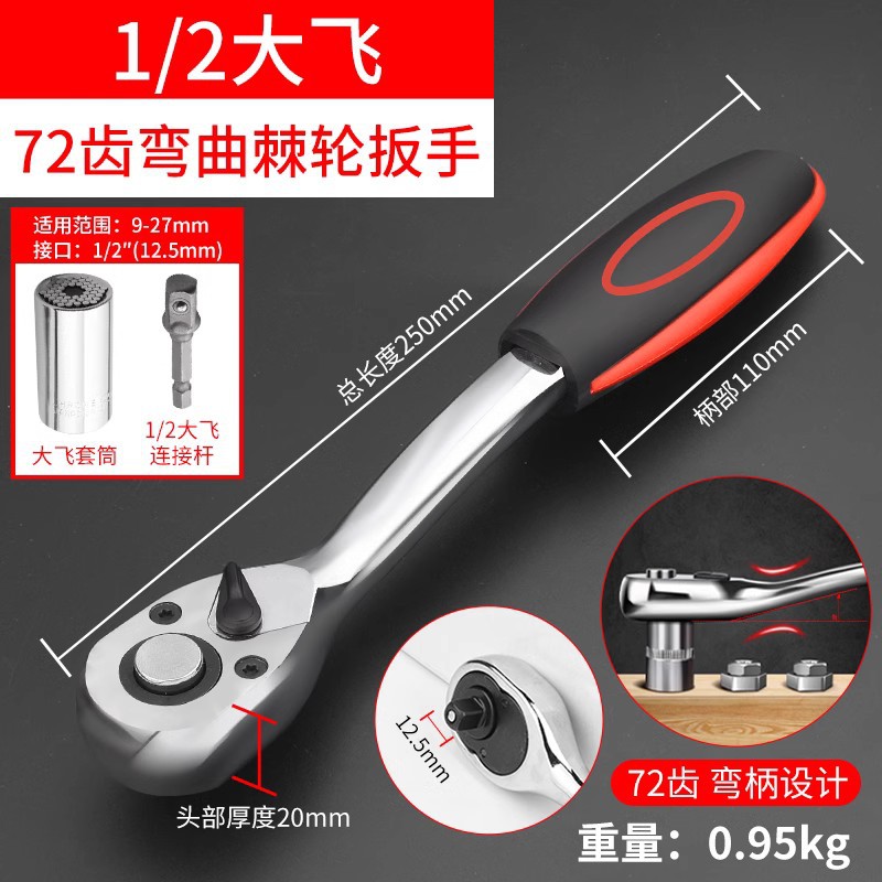 • 1/2 곡선 핸들 래칫 렌치 + 범용 소켓 (9-27mm)