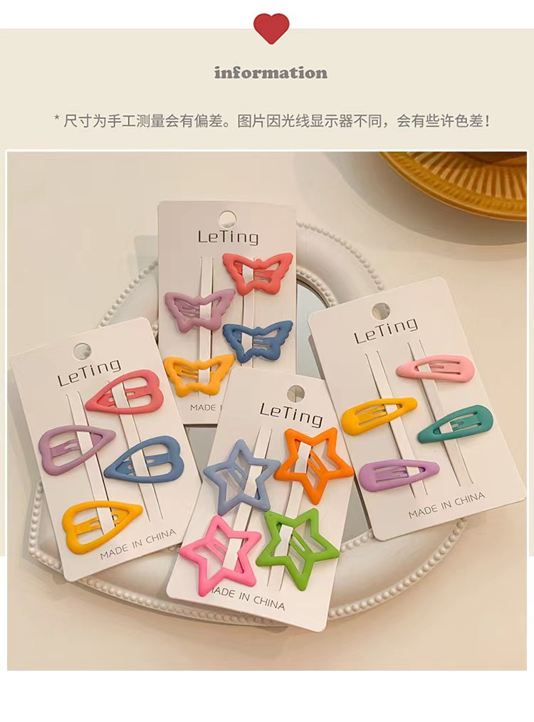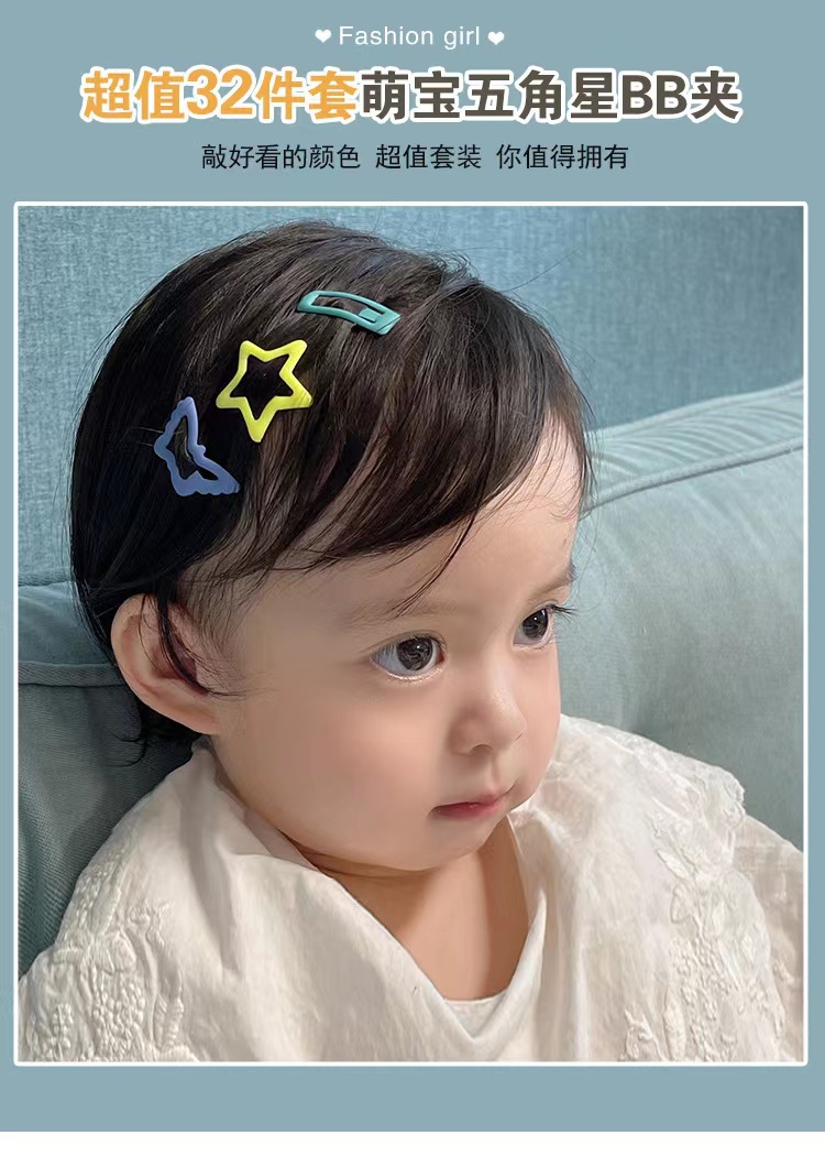 아이들의 귀여운 스몰 사이즈 BBB 클립 깨진 머리 클립 하트 모양의 머리 클립 소녀 다섯 지적 별 머리 클립 앞머리 사이드 클립 아기 머리 클립