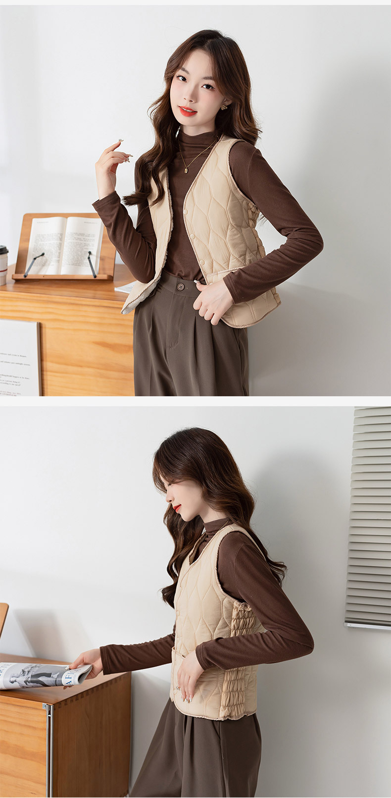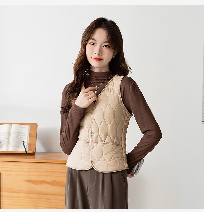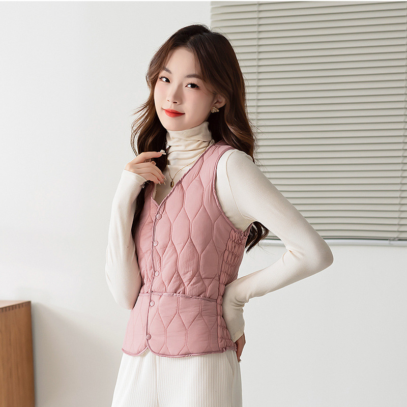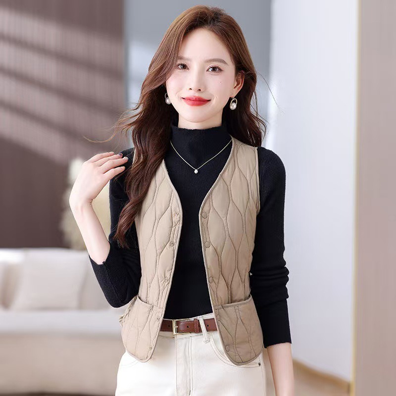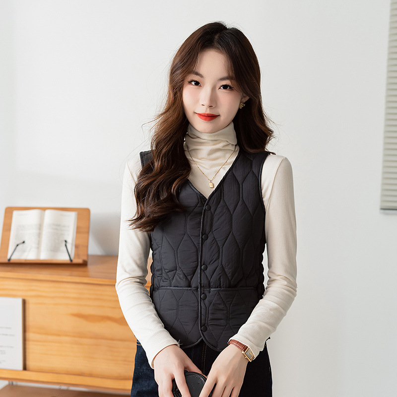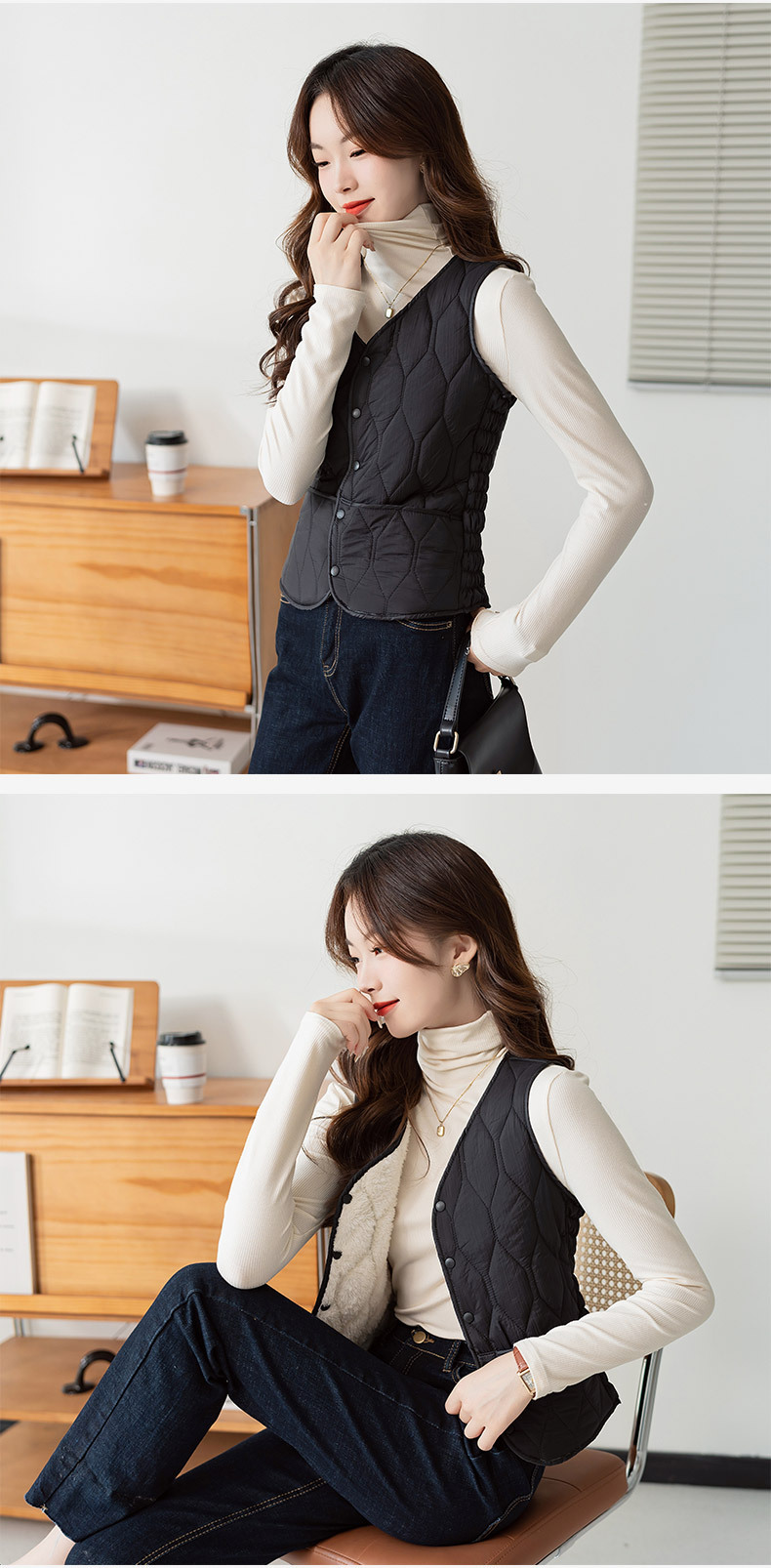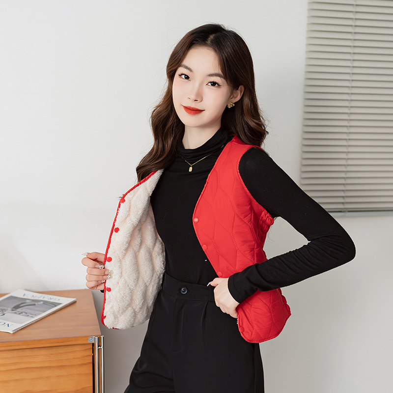 겨울 새로운 기모 조끼 여자의 따뜻한 다운 면 조끼 두꺼운 세트 V-넥 내부 착용 조끼 어깨 착용 겉옷스토어 가기