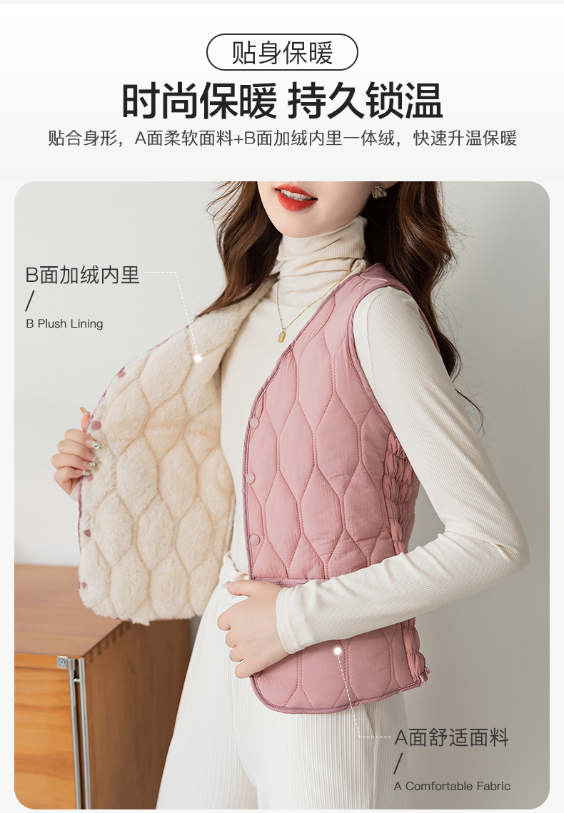 겨울 새로운 기모 조끼 여자의 따뜻한 다운 면 조끼 두꺼운 세트 V-넥 내부 착용 조끼 어깨 착용 겉옷