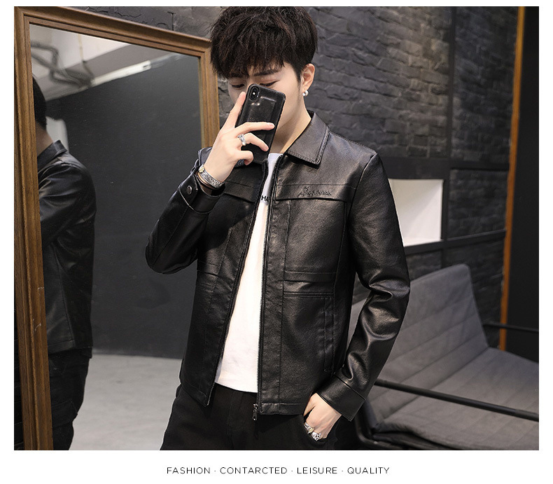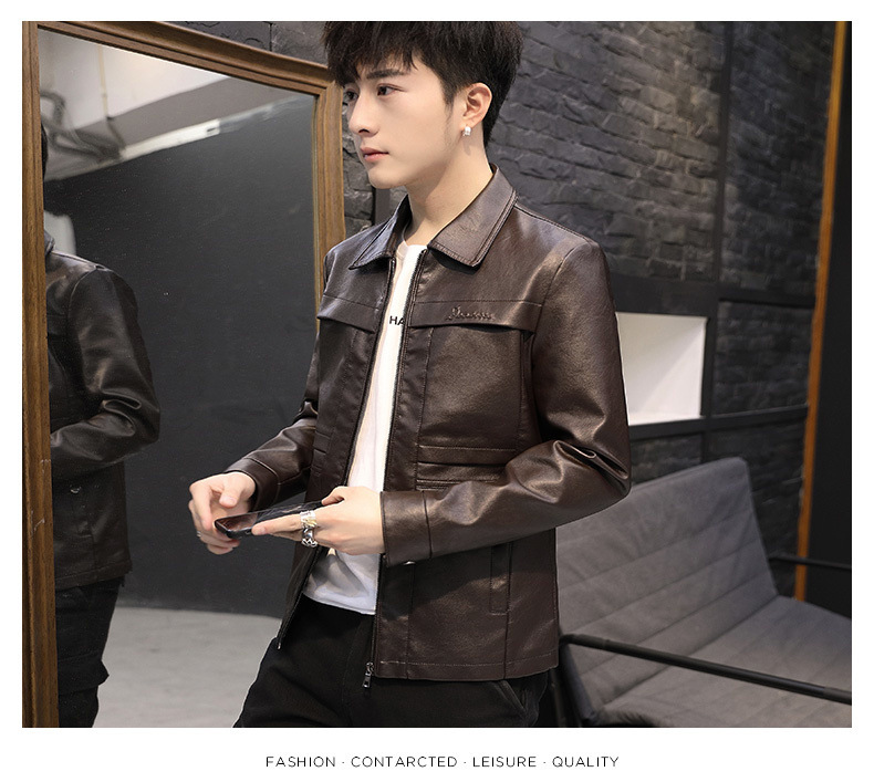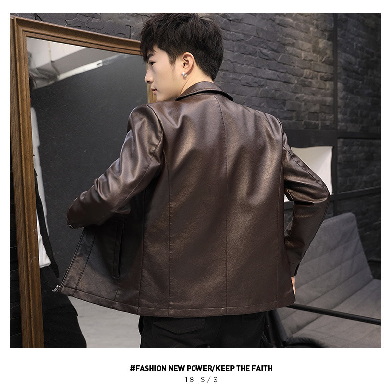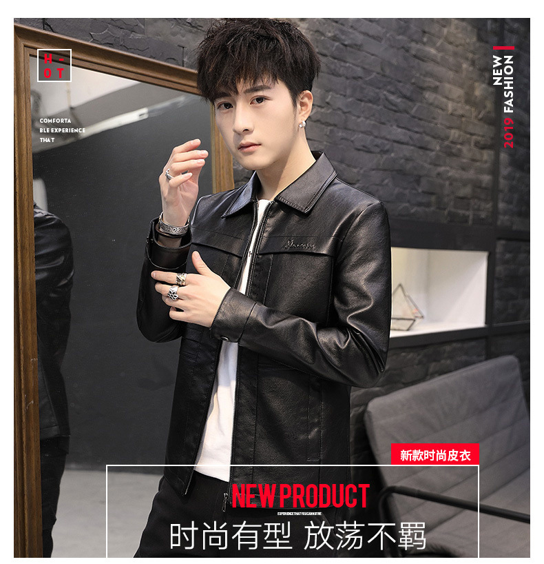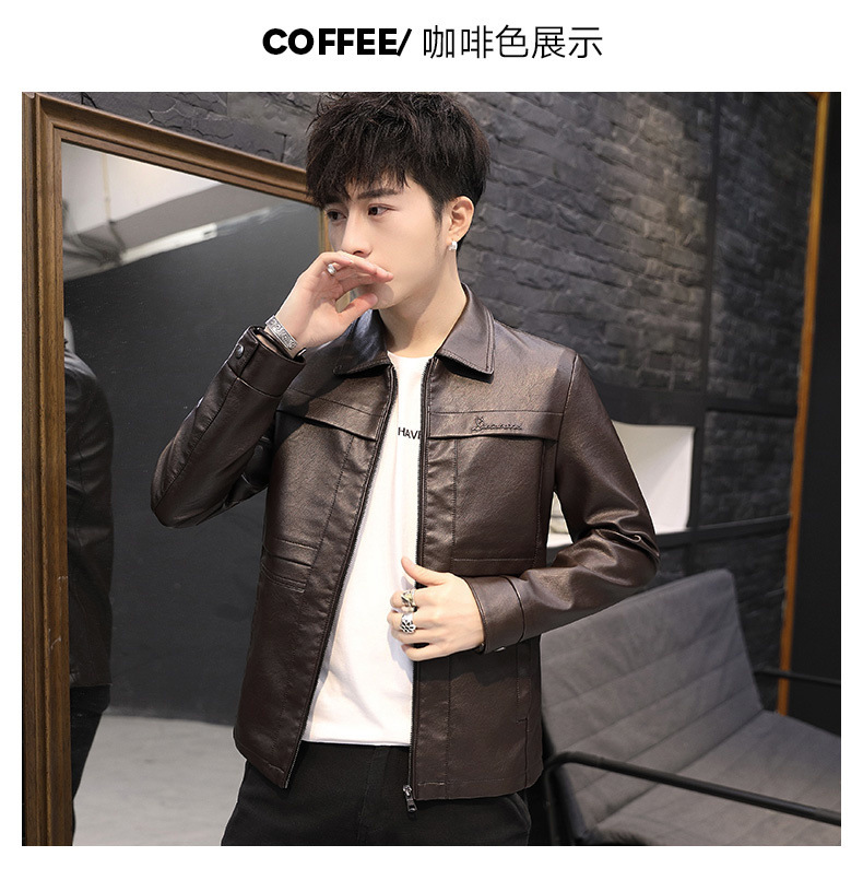 [재고 빠른 머리] TikTok 폭발 남자의 가죽 자켓 유행 가을과 겨울 PU 가죽 남자의 한국 캐주얼 남성 자켓