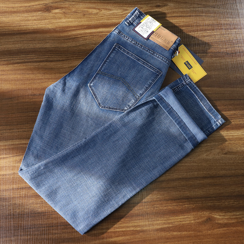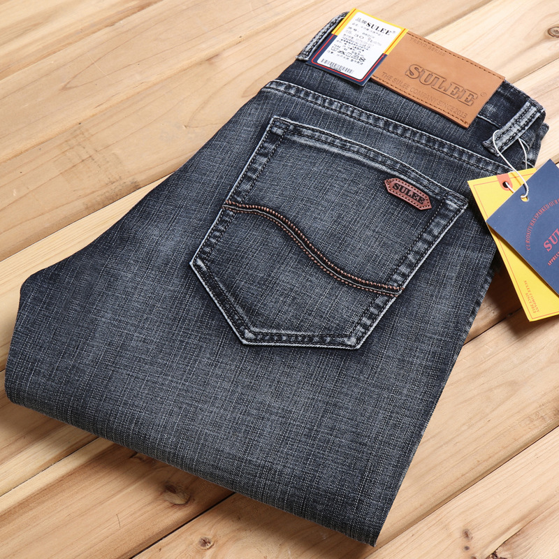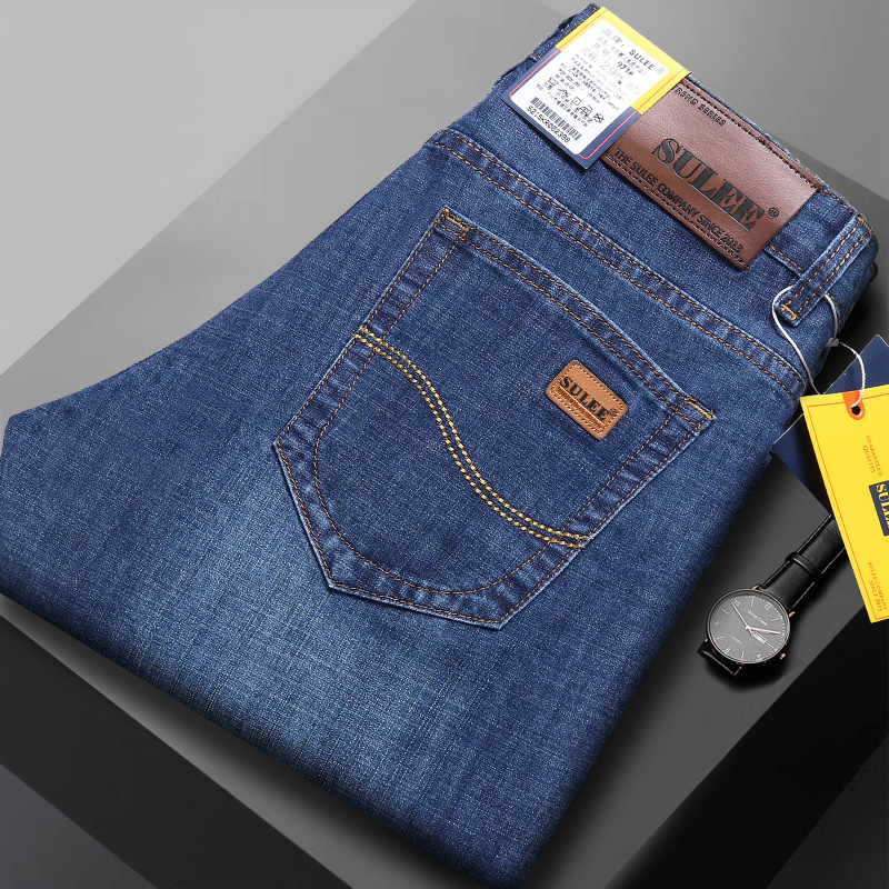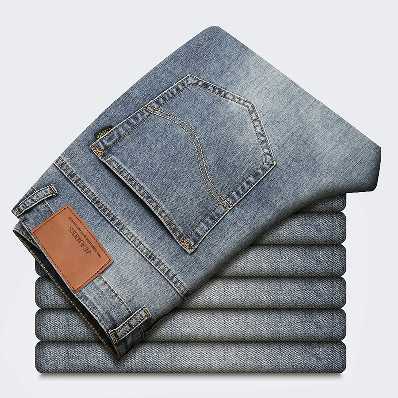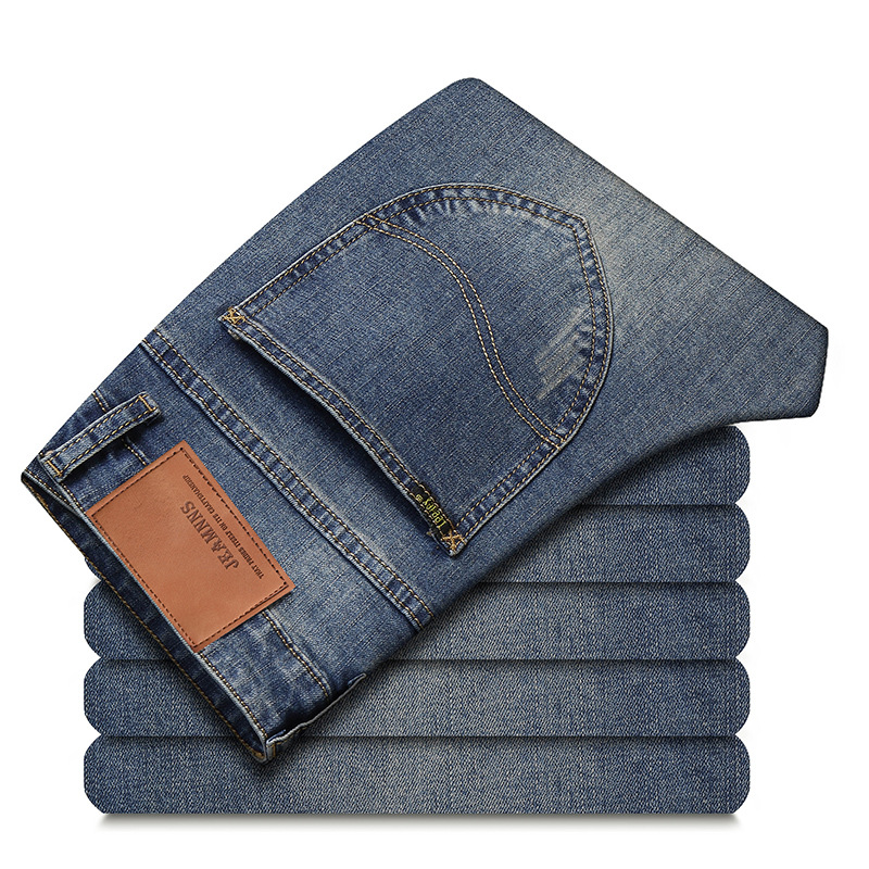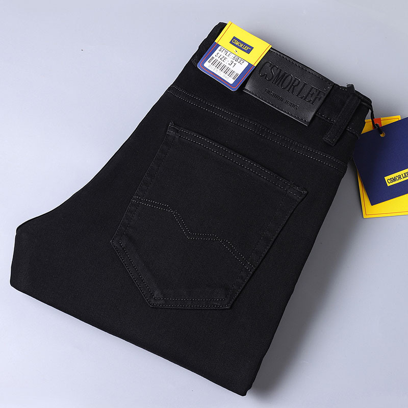 csmorLEF 정품 남성용 청바지, 스트레이트 루즈핏, 신축성 있는 슬림핏, 봄/가을용, 레트로 스타일, 남성용 트렌디 브랜드스토어 가기
