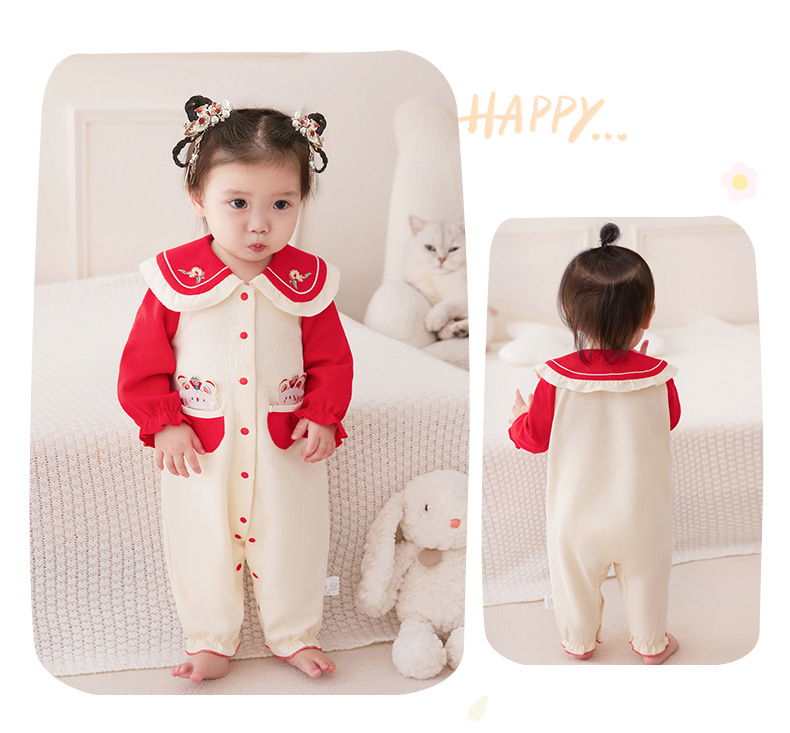 아이디어 어린이 중국 점프 슈트 2023 가을 아기 소녀 신생아 아기 축제 한 살짜리 등반 세트 봄과 봄 3029