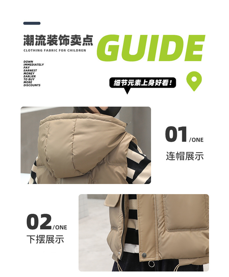 소년 가을과 겨울 다운 면 조끼 2023 새로운 어린이 겨울 옷 두꺼운 후드 탑 잘 생긴 중간 및 큰 어린이 패션스토어 가기