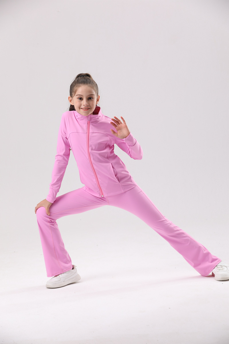 가을과 겨울 유럽과 미국 안티 자외선 통기성 단색 어린이 요가 의류 세트 실행 야외 긴 소매 코트 여성