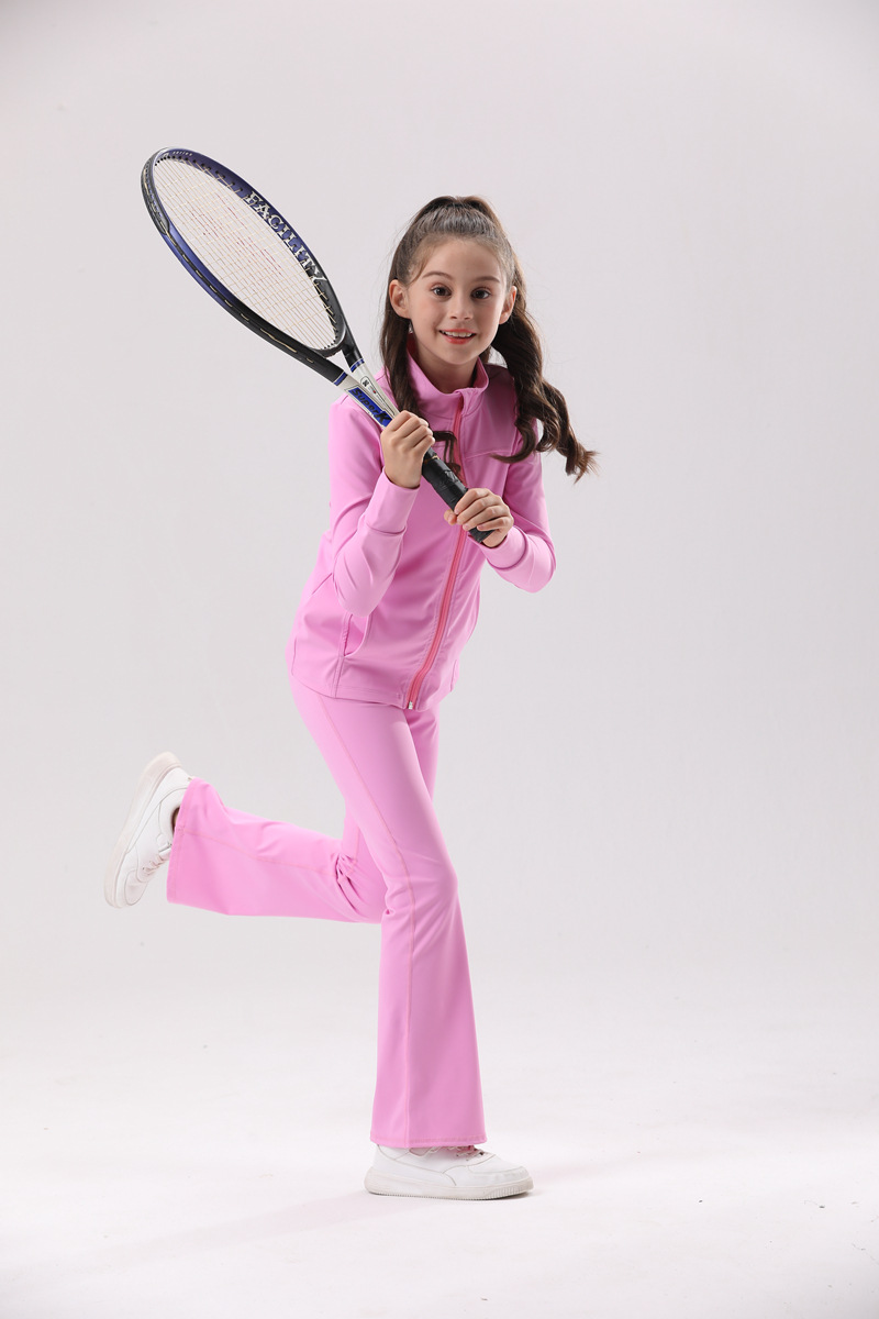 가을과 겨울 유럽과 미국 안티 자외선 통기성 단색 어린이 요가 의류 세트 실행 야외 긴 소매 코트 여성스토어 가기