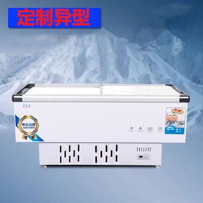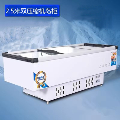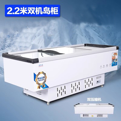 상업용 냉동고 슈퍼마켓 만두 탕위안 아이스크림 냉동고 수평 냉동고 유리 디스플레이 캐비닛 2 도어 플랫 아일랜드 캐비닛
