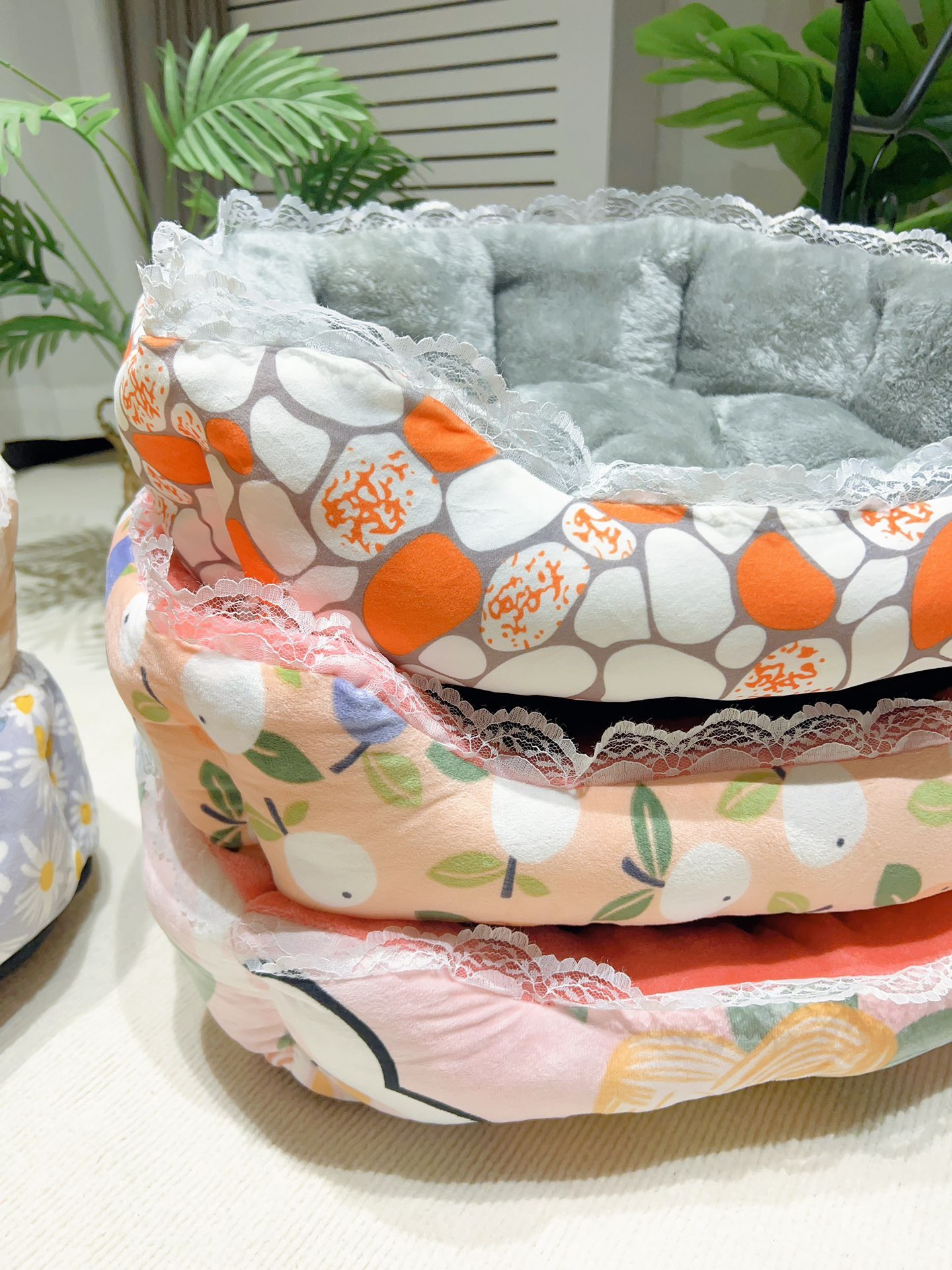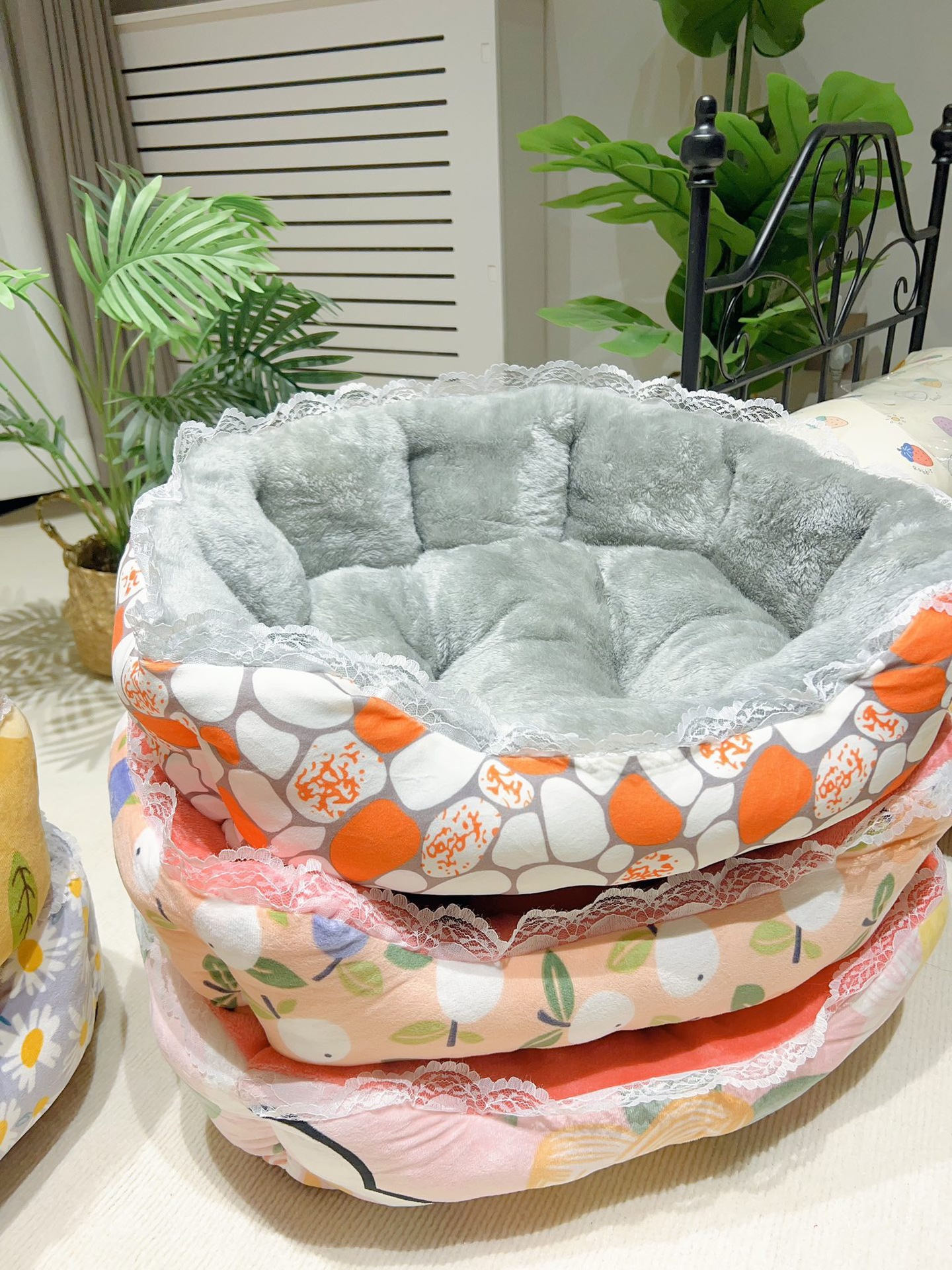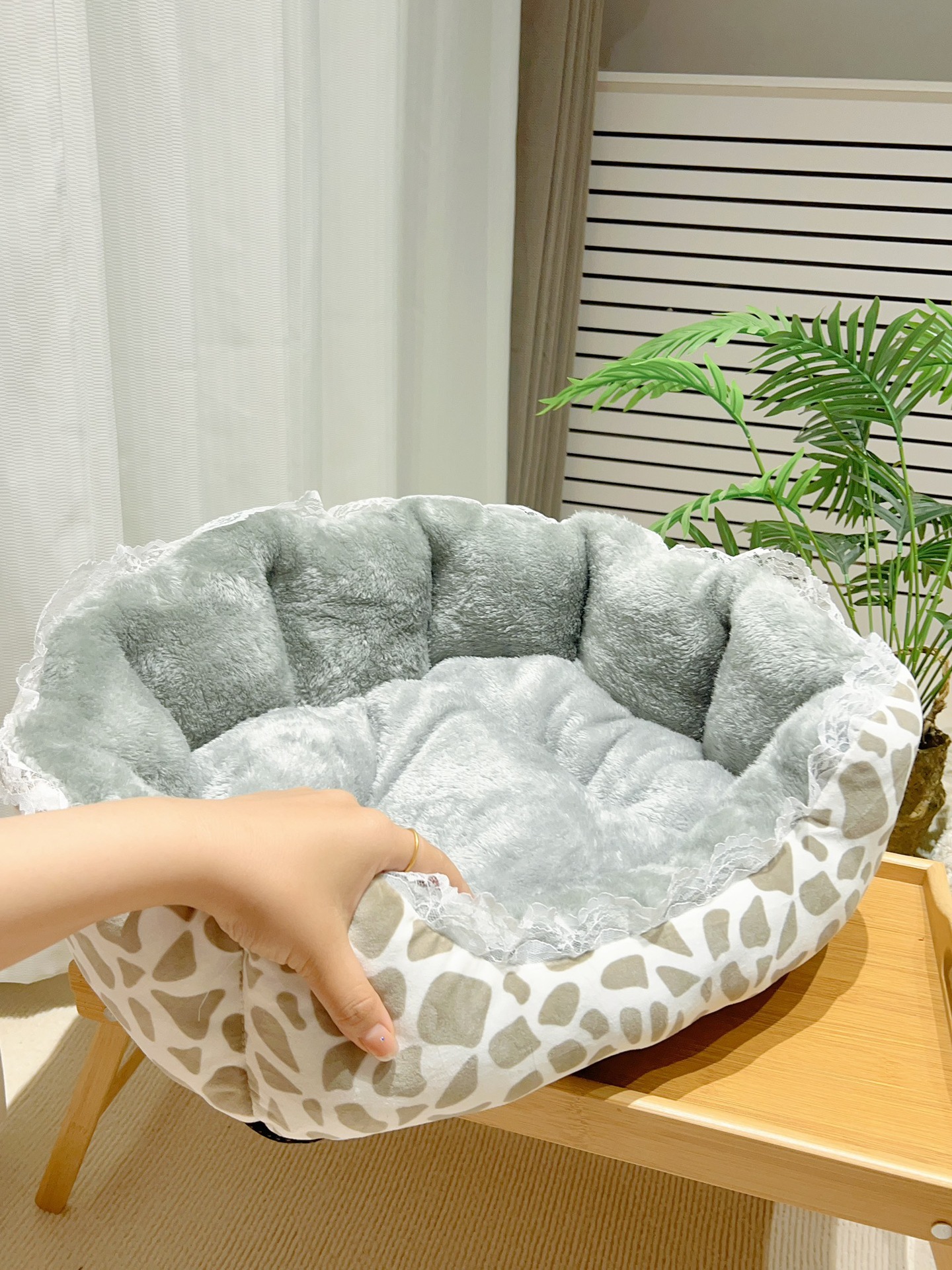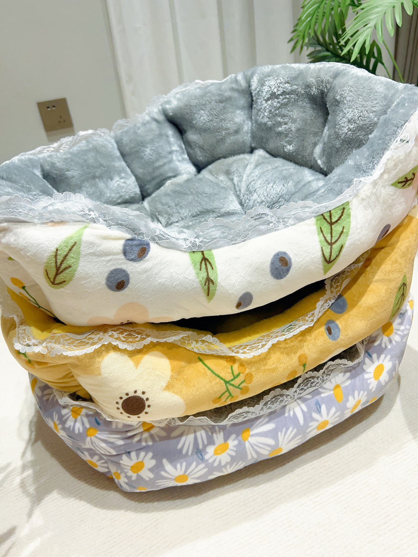 애완 동물 용품 한국 우유 벨벳 쉘 둥지와 레이스 사이드 고양이 사육장 개 사육장 부드러운 플란넬 겨울 따뜻한 사육장스토어 가기