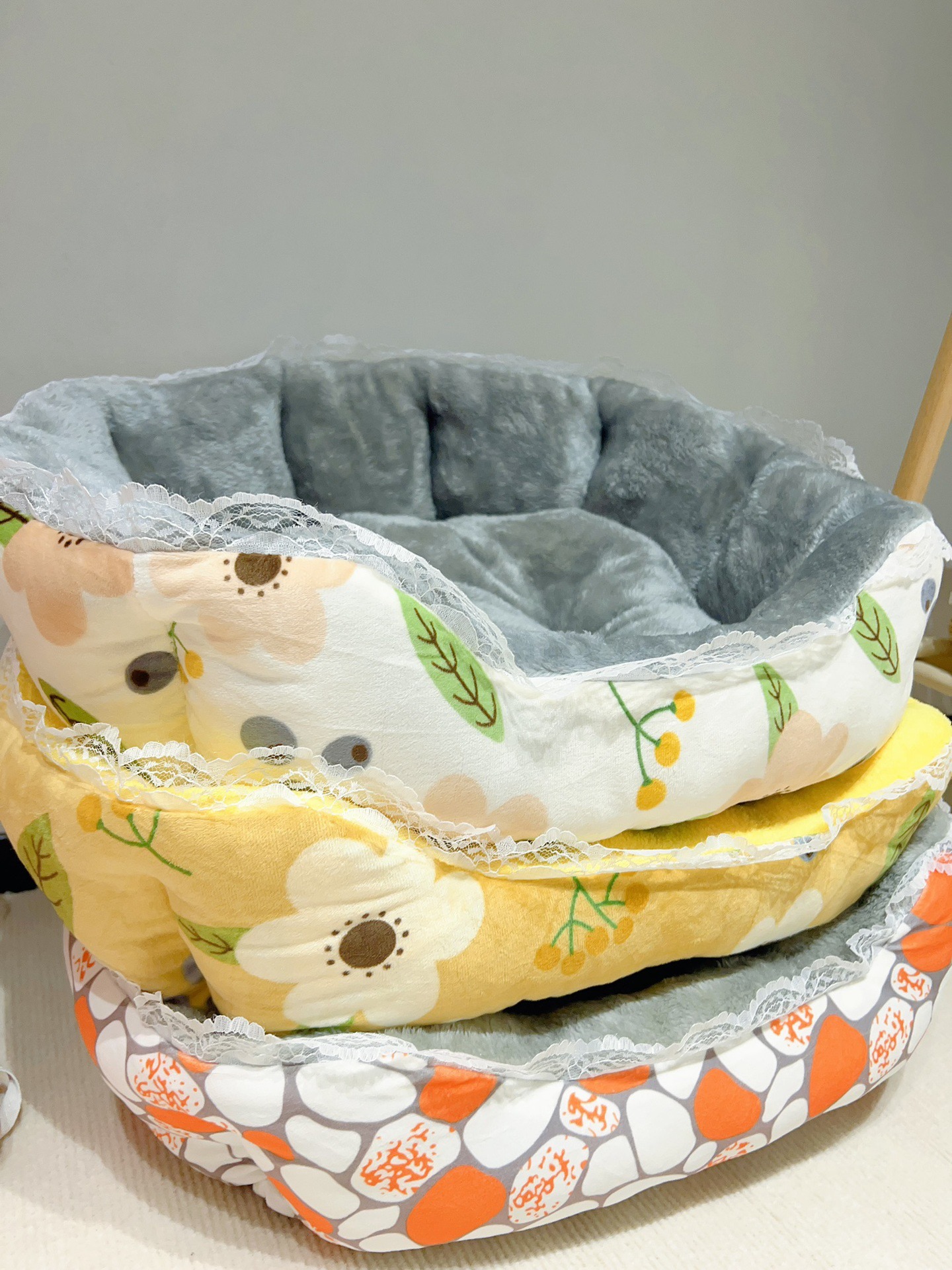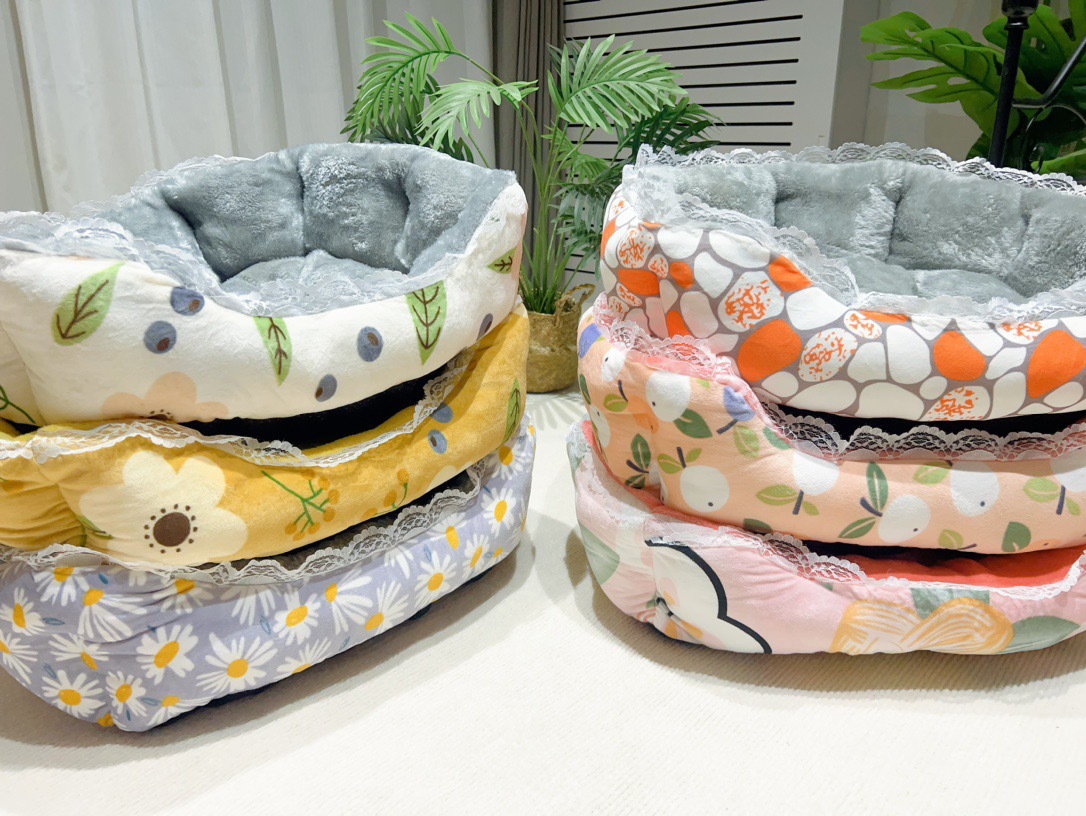애완 동물 용품 한국 우유 벨벳 쉘 둥지와 레이스 사이드 고양이 사육장 개 사육장 부드러운 플란넬 겨울 따뜻한 사육장