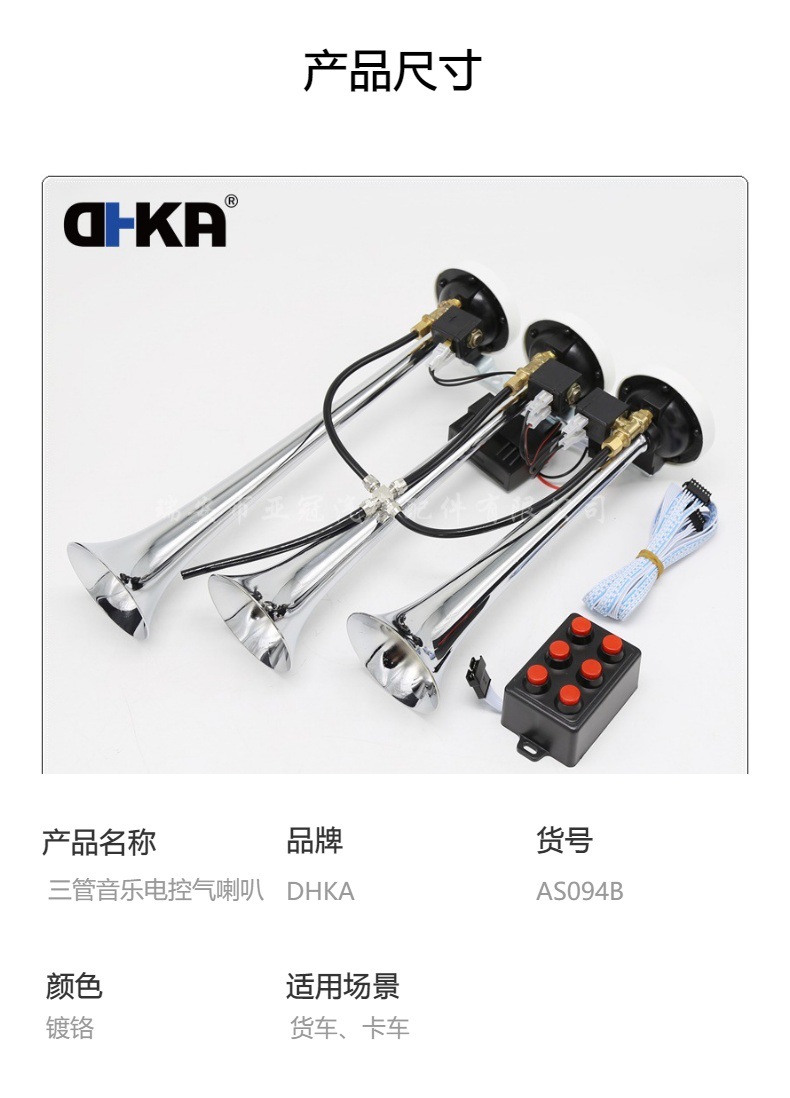 DHKA Yaguan-AS094B 재고 12/24V 3 튜브 음악 전자 제어 에어 혼 6 톤 스피커 수정스토어 가기