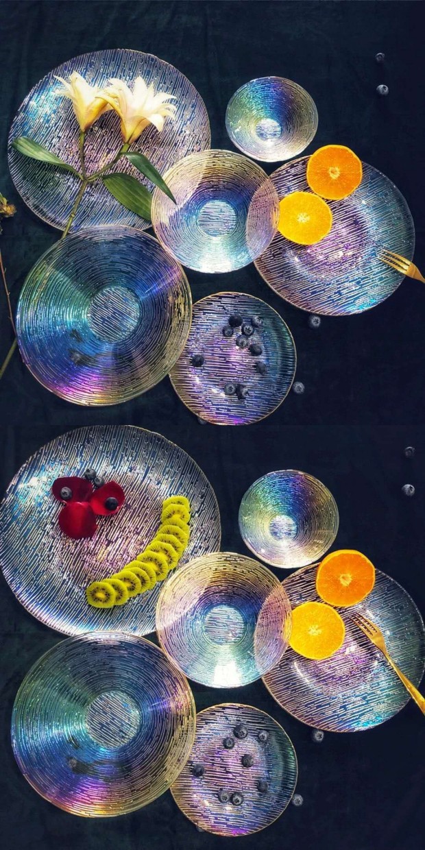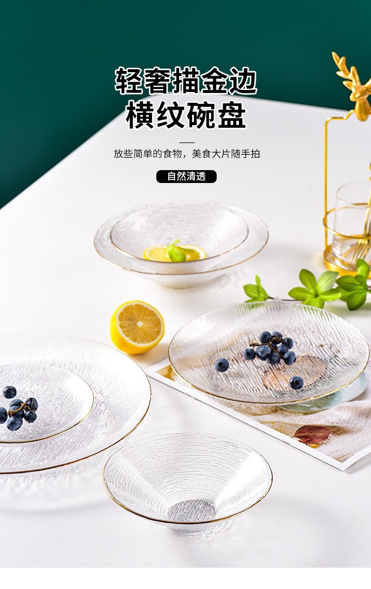일본식 프놈펜 크로스 그레인 유리 그릇과 접시 세트 창조적 인 과일 샐러드 투명 그릇과 접시 식기 서양 음식 접시 드림 플레이트스토어 가기