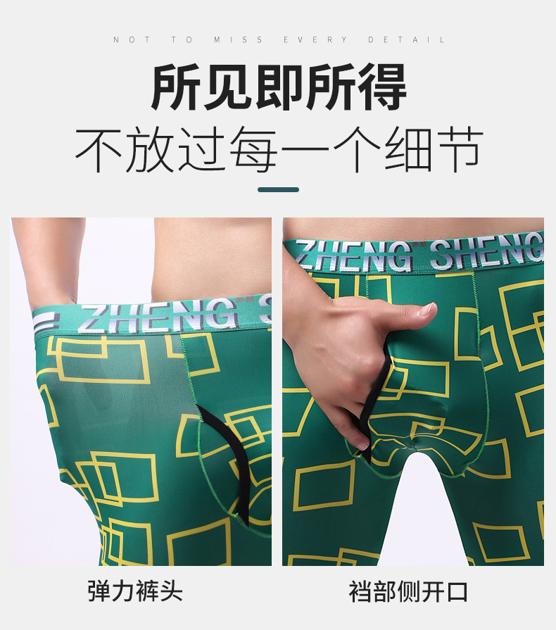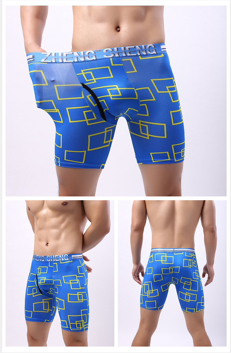남자 속옷 아이스 실크 연장 버전 안티 마모 다리 오픈 입 스포츠 복서 속건 통기성 복서 도매스토어 가기