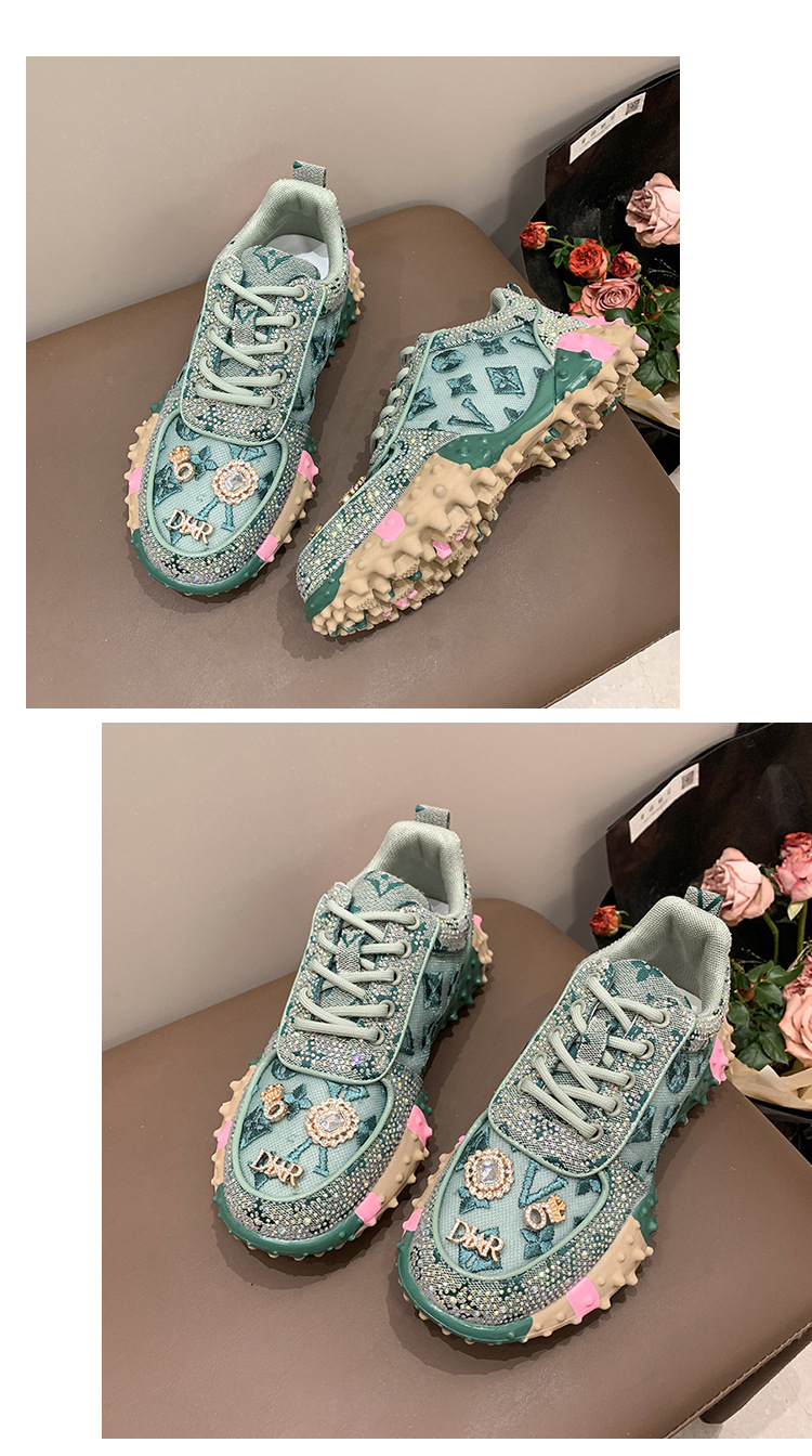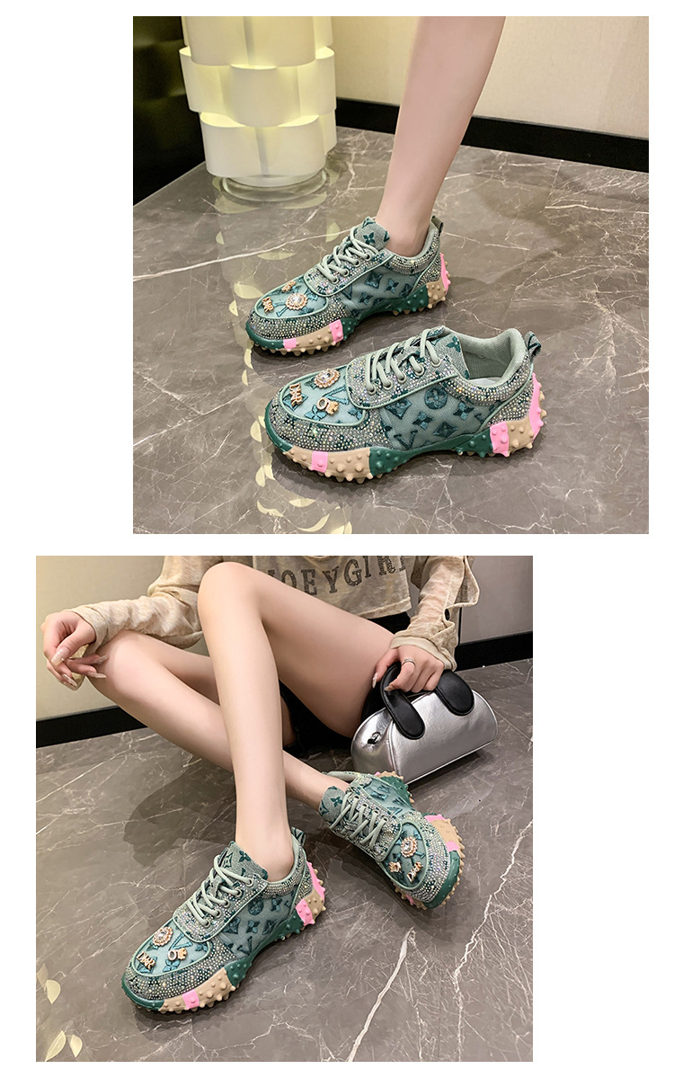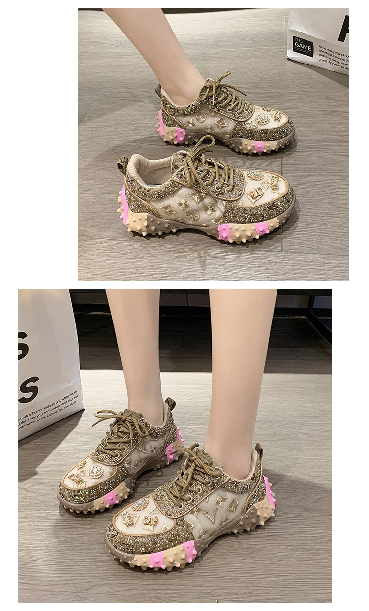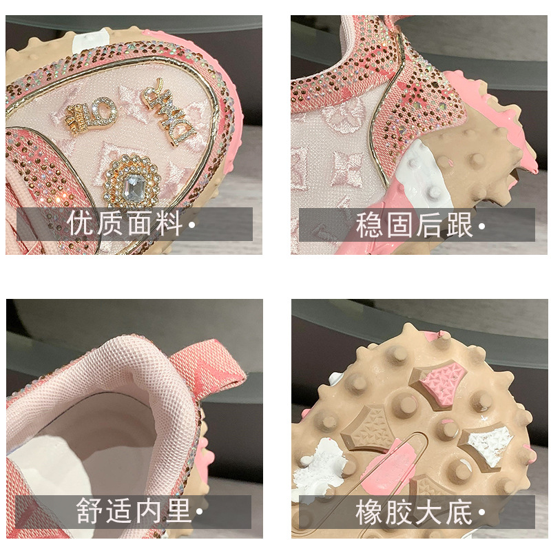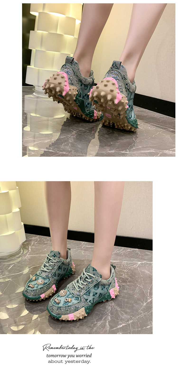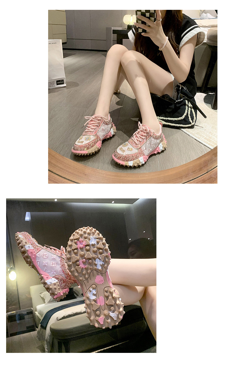 MMG 유럽 역 뜨거운 판매 편지 단일 신발 여성 라인 석 패션 운동화 두리안 바닥 플랫폼 케이크 바닥 메쉬 단일 신발 여성