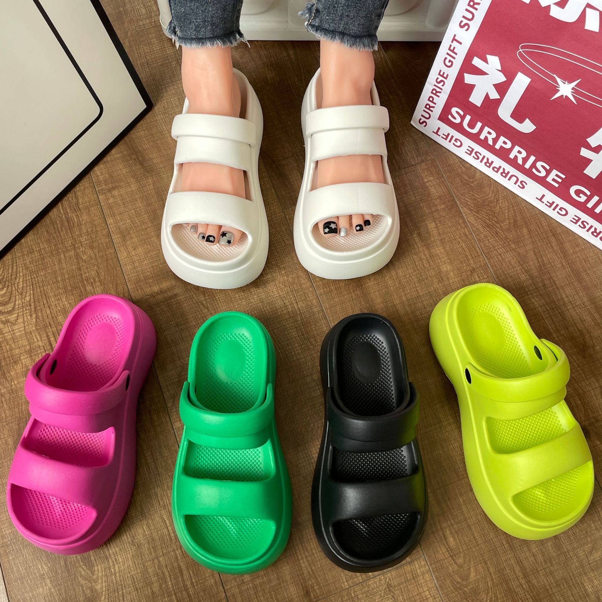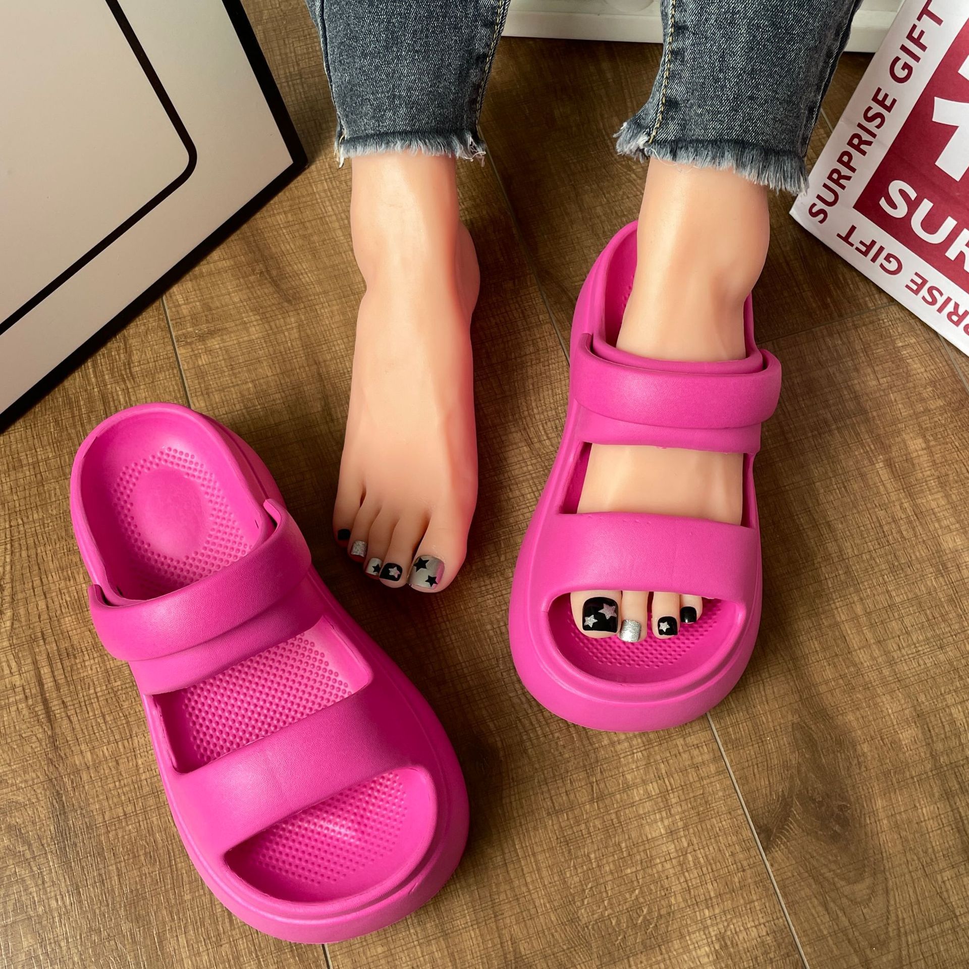 슬리퍼 여성용 여름 폭발 겉옷 두꺼운 바닥 증가 부드러운 바닥 패션 샌들 홈 탈취제 미끄럼 방지 재고 도매