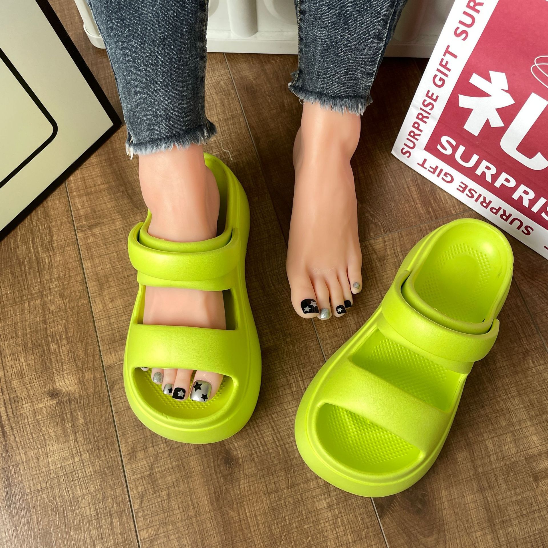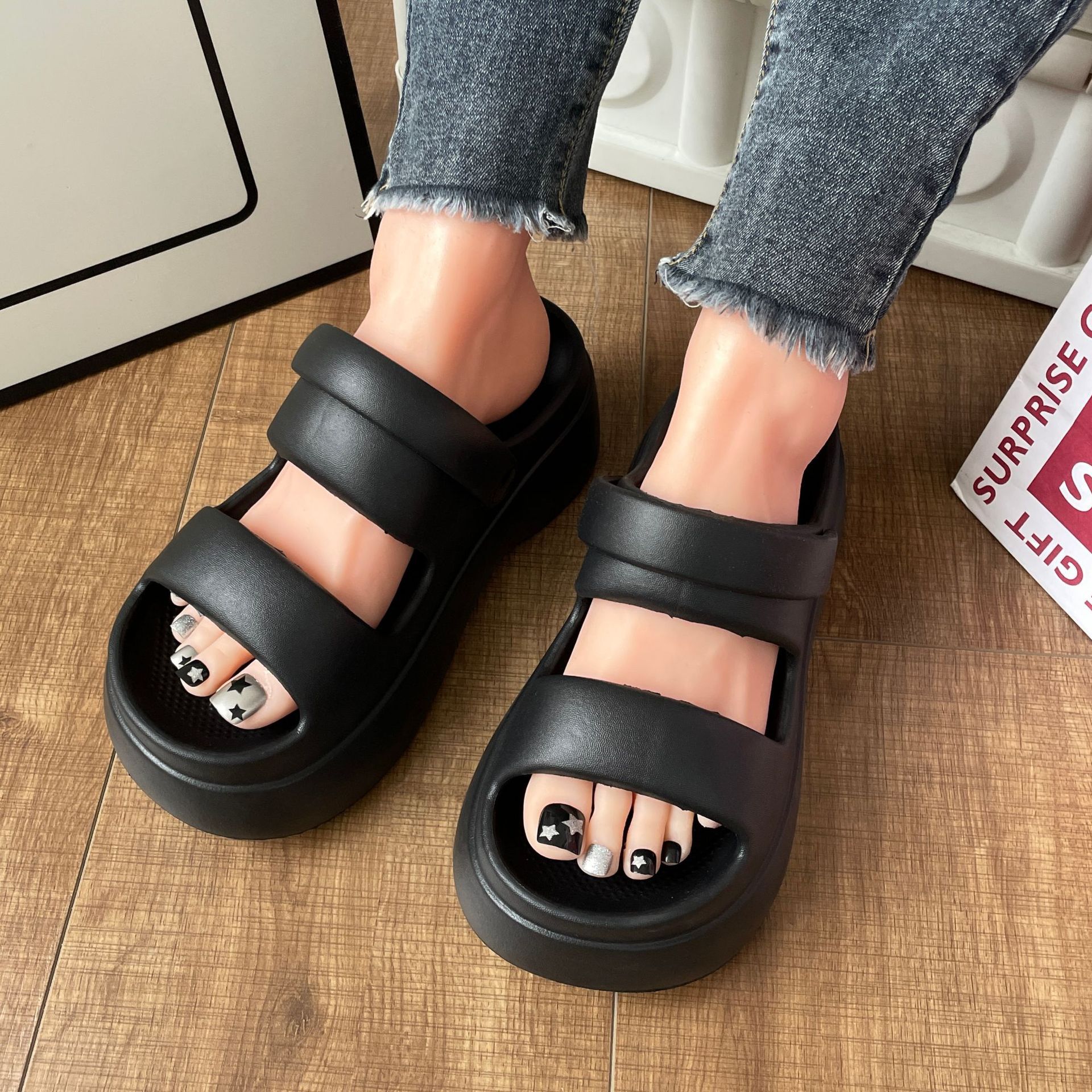 슬리퍼 여성용 여름 폭발 겉옷 두꺼운 바닥 증가 부드러운 바닥 패션 샌들 홈 탈취제 미끄럼 방지 재고 도매스토어 가기