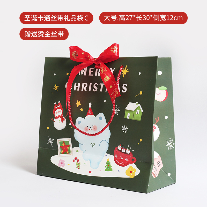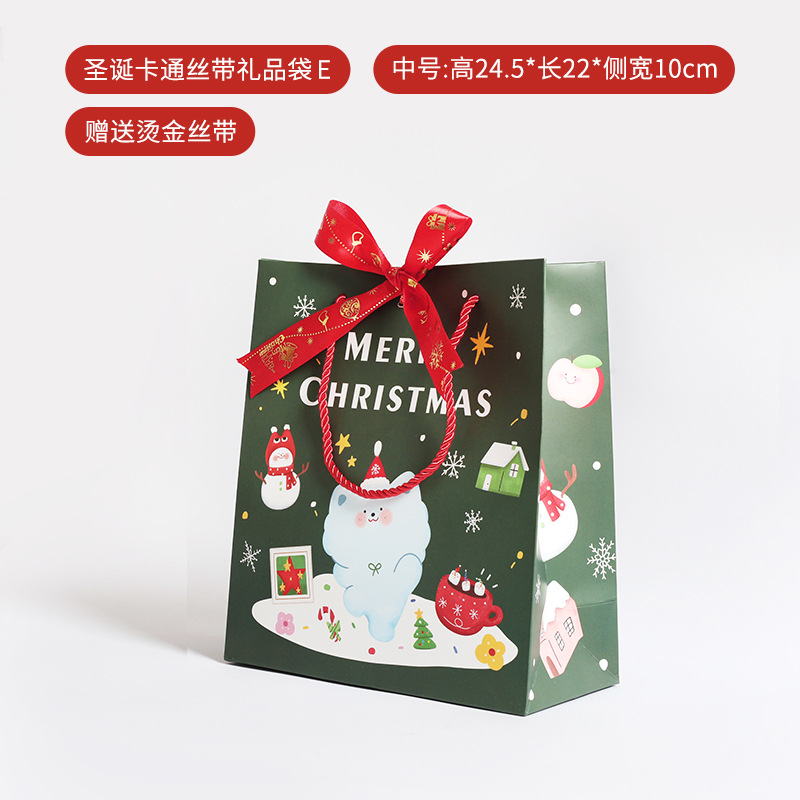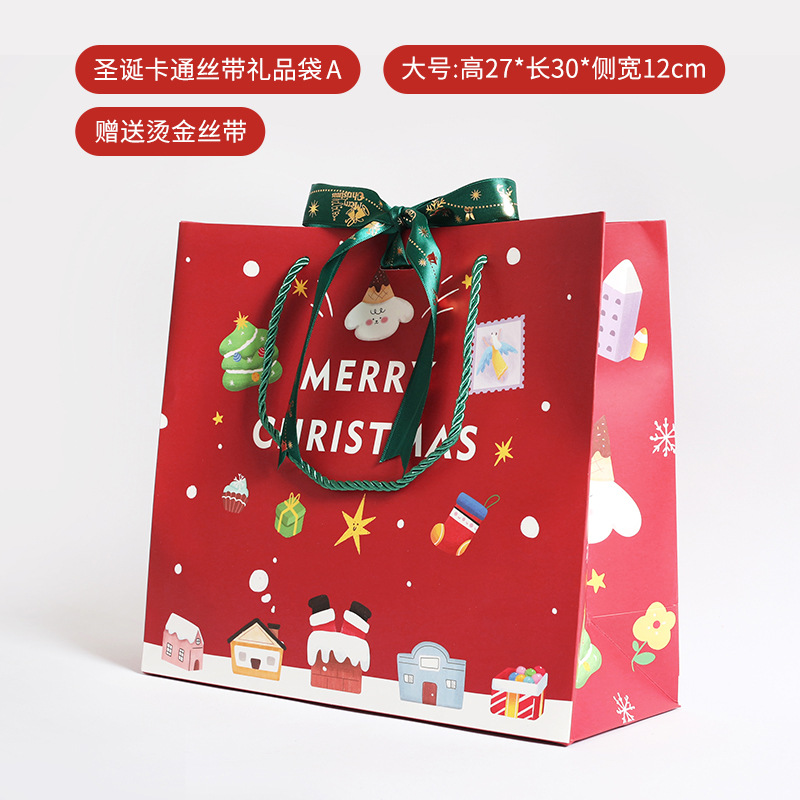 2024 새로운 리본 크리스마스 손 선물 가방 크리스마스 이브 선물 포장 가방 크리스마스 만화 토트 가방