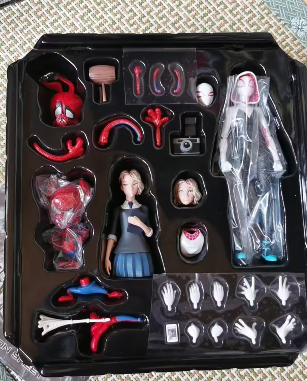 애니메이션 도매 스파이더 맨 평행 우주 그웬 거미 돼지 남자 천 가치 훈련 움직일 수있는 박스형 수제 모델