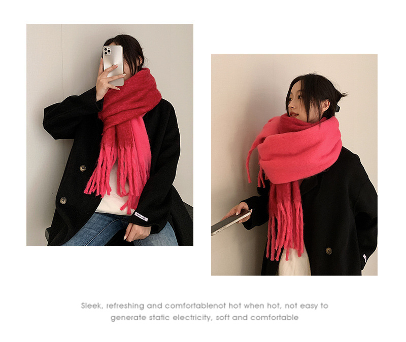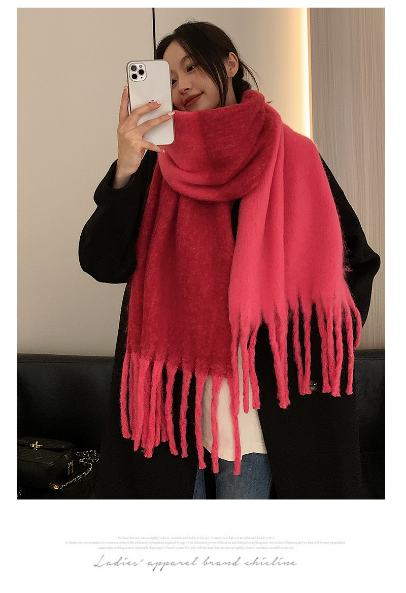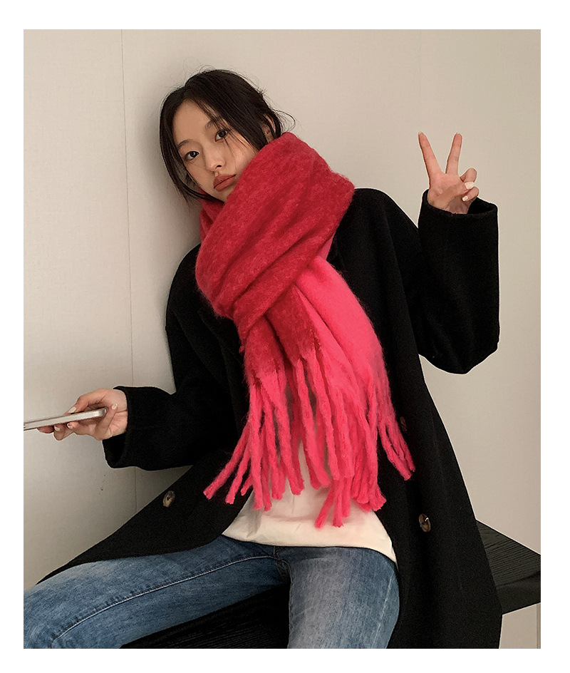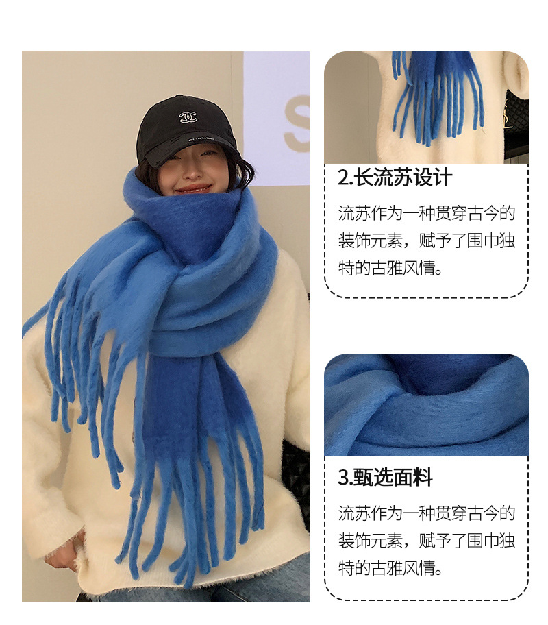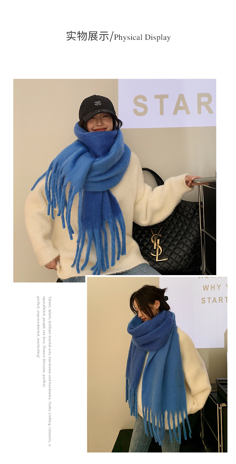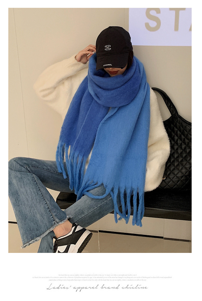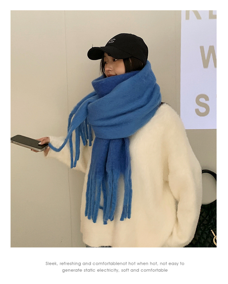 클라인 블루 한국 스타일 새로운 스카프 두꺼운 격자 무늬 두꺼운 브레이드 술 숄 그라디언트 패션 신선한 학생 여성