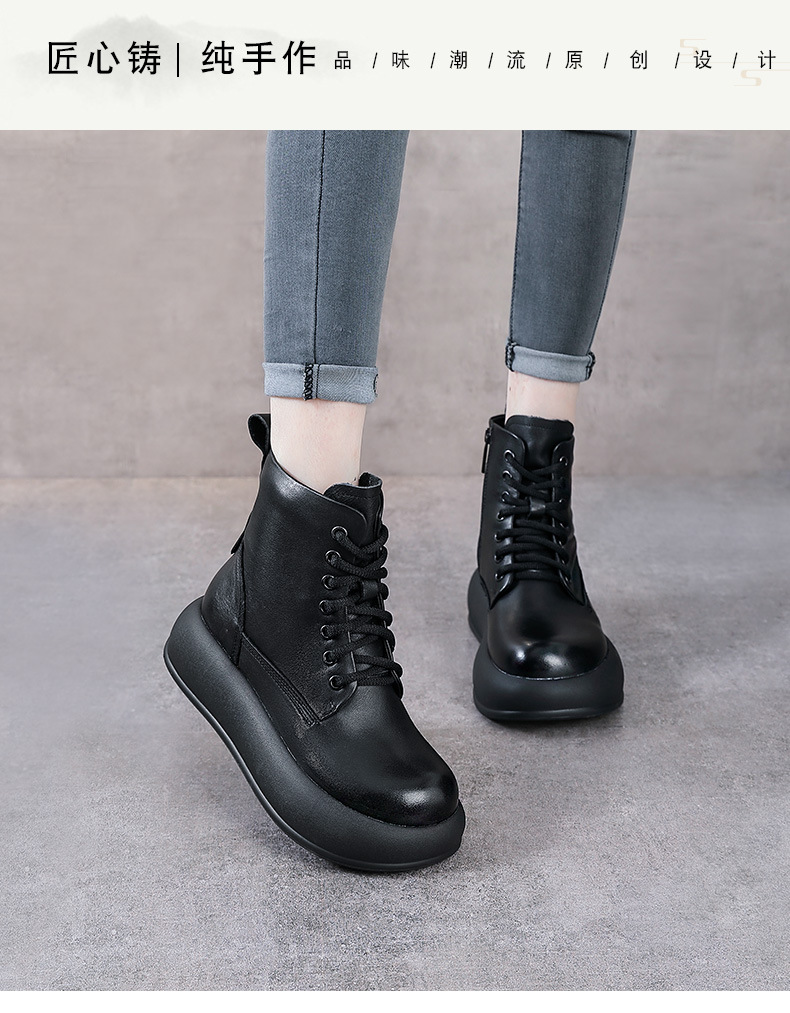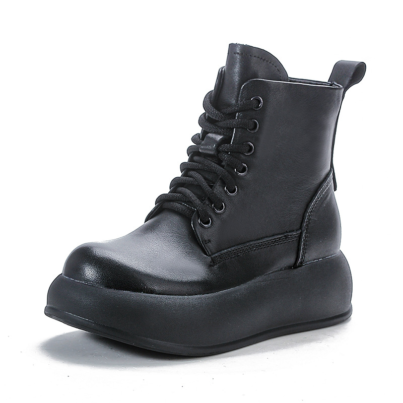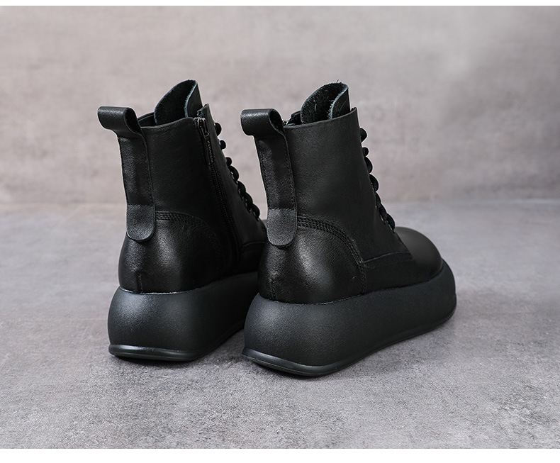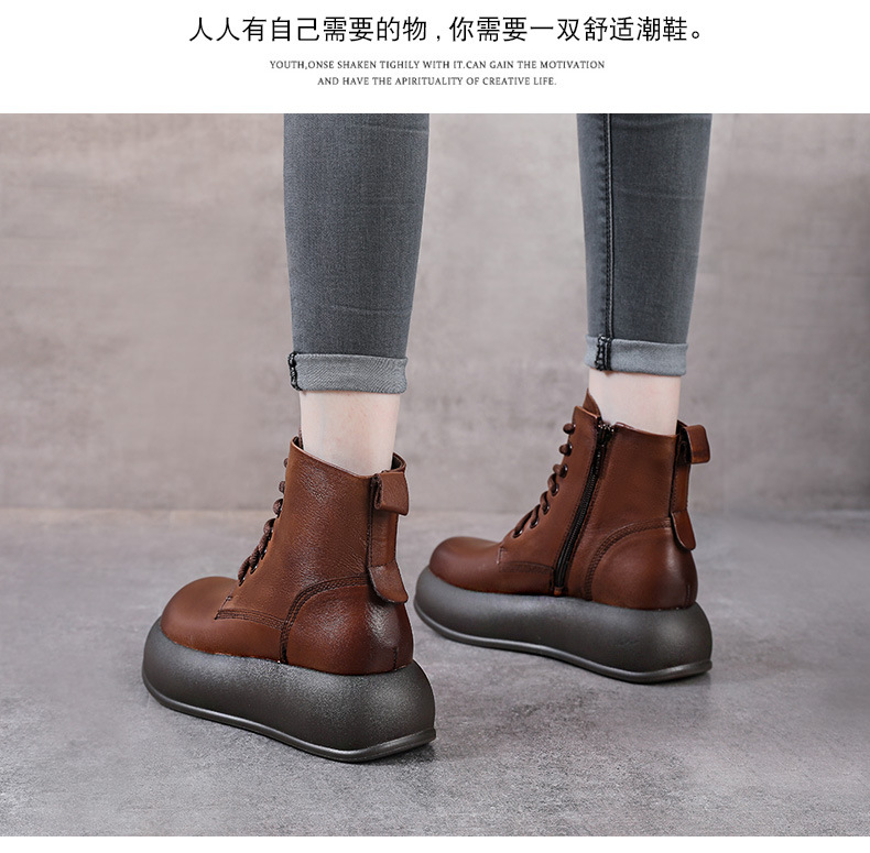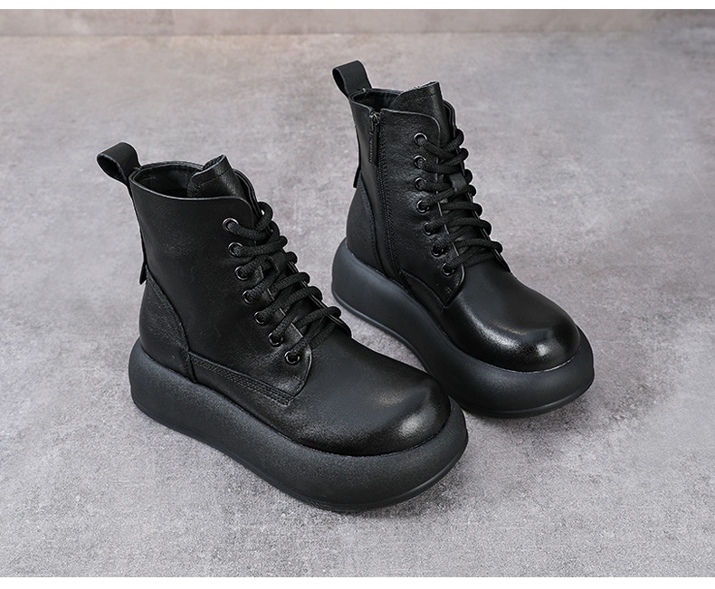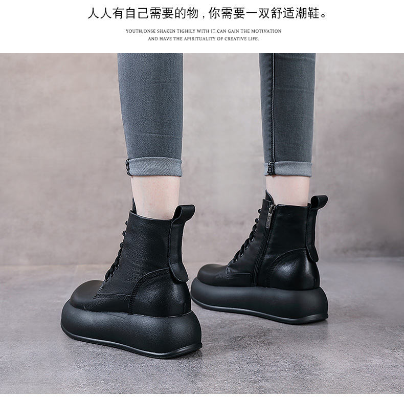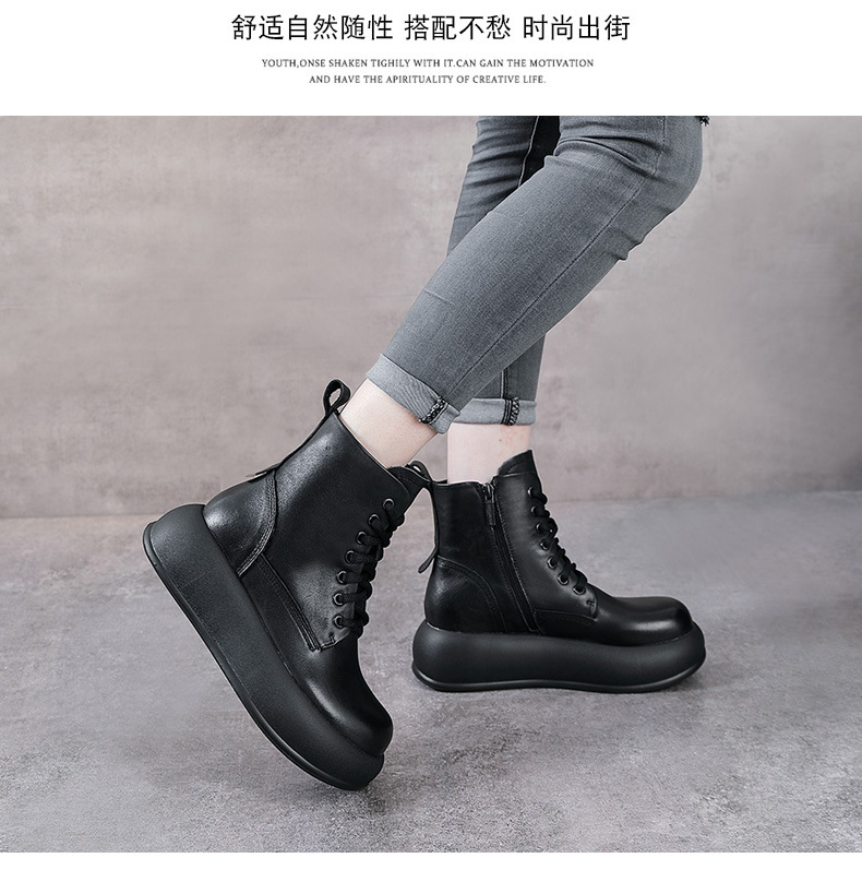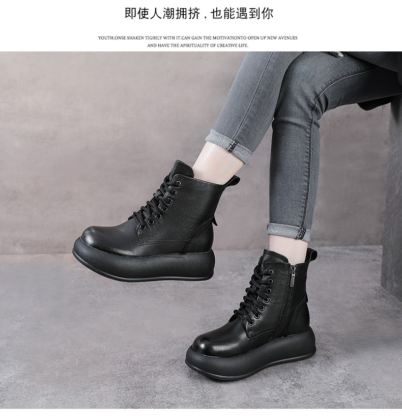 새로운 정품 가죽 마틴 부츠 여성용 빈티지 싱글 부츠 탑 레이어 소가죽 플랫폼 힐 바이커 부츠 두꺼운 바닥 레이스 업 짧은 부츠