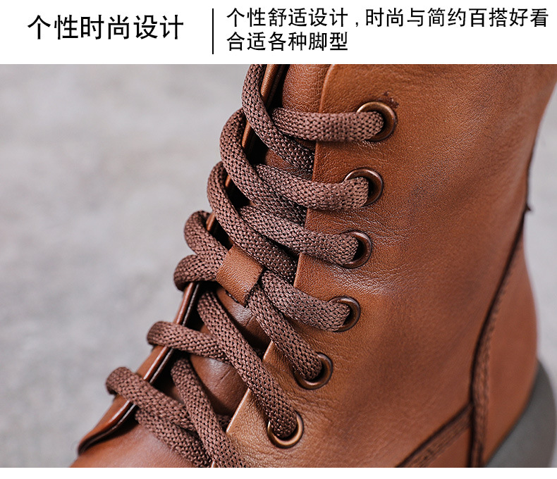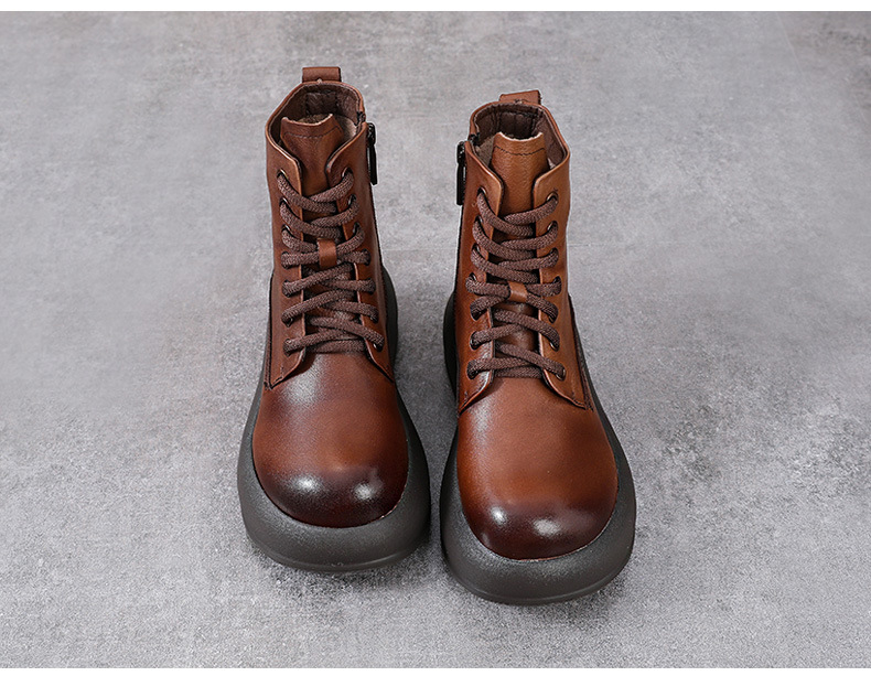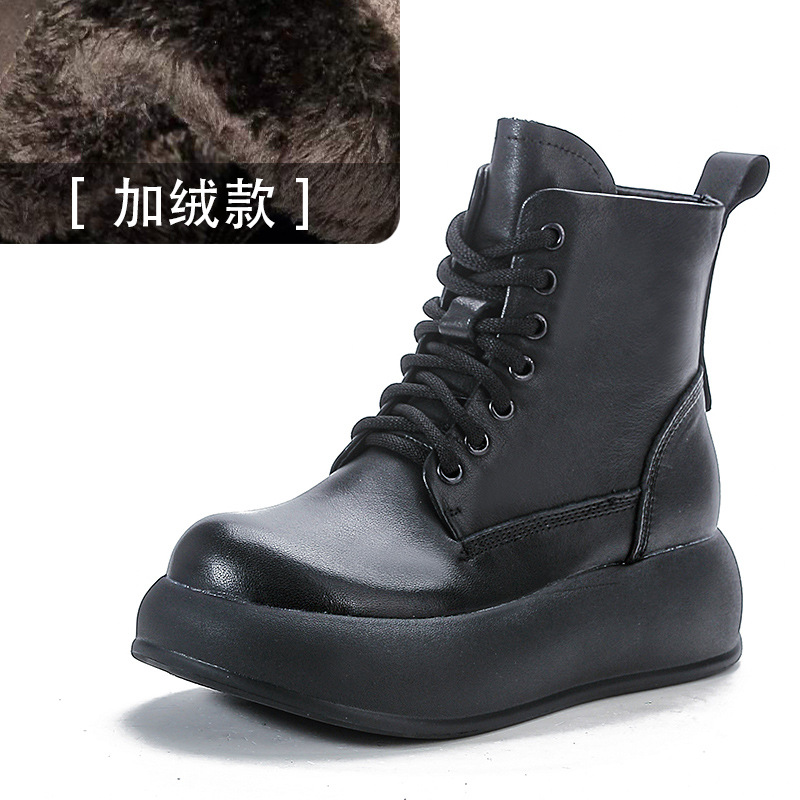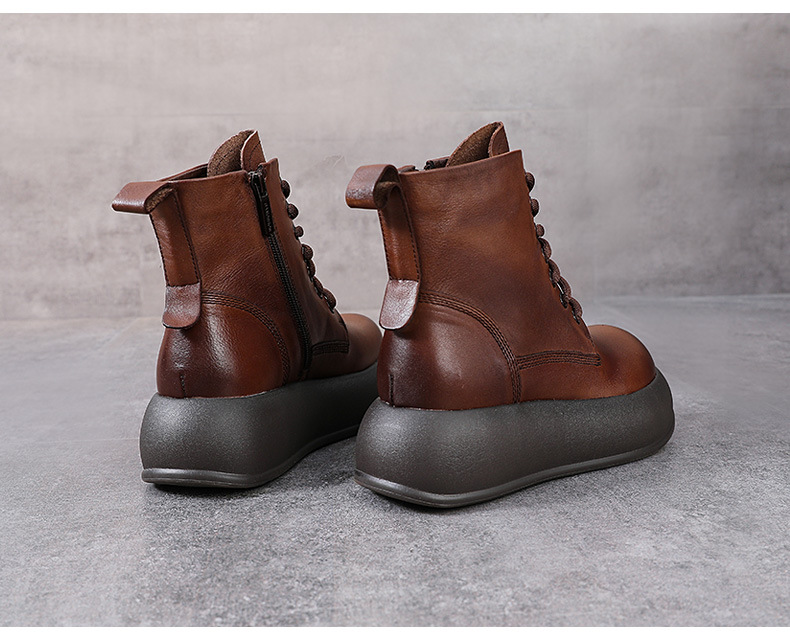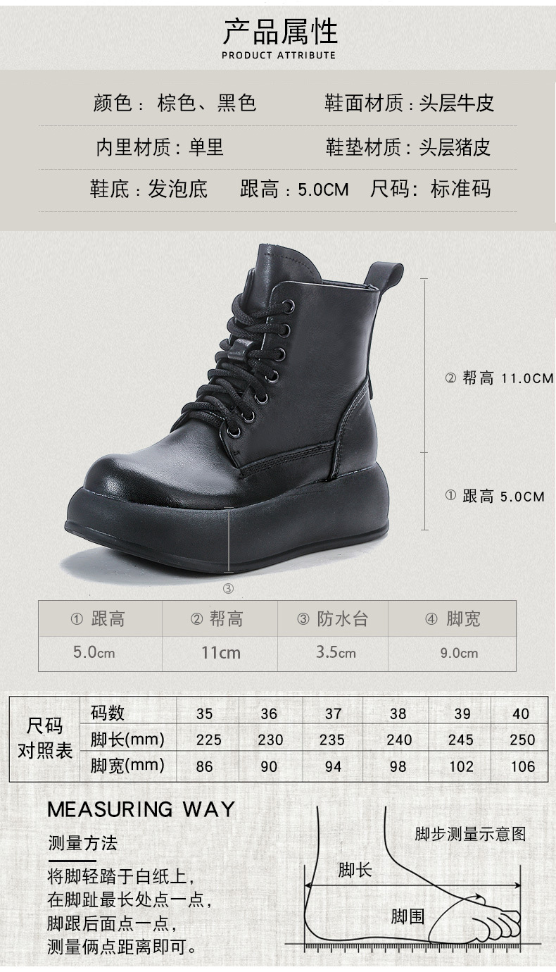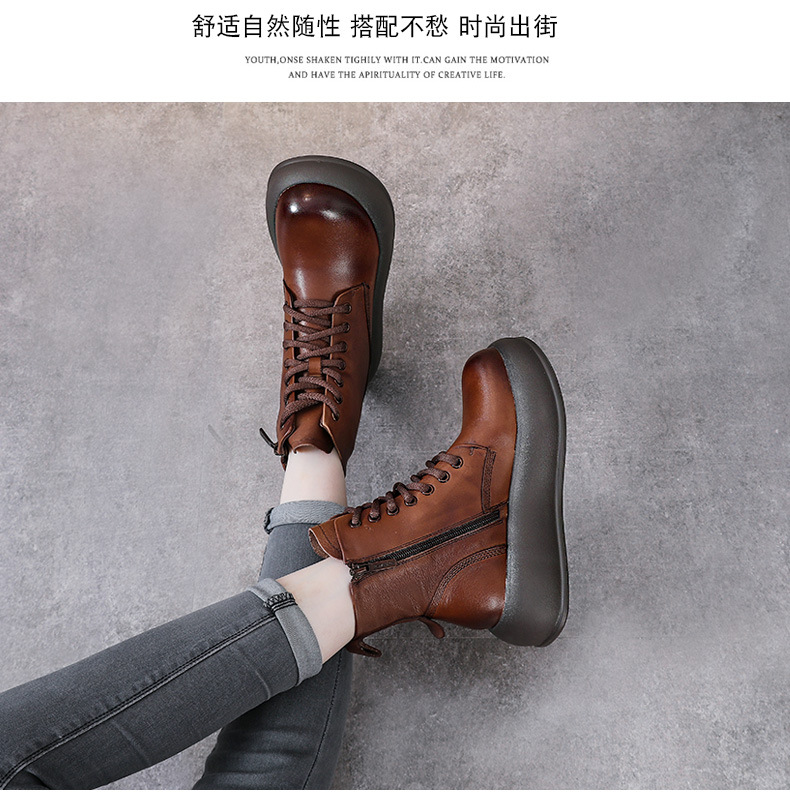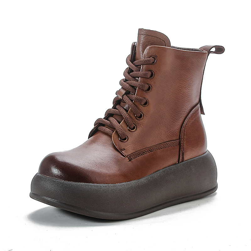 새로운 정품 가죽 마틴 부츠 여성용 빈티지 싱글 부츠 탑 레이어 소가죽 플랫폼 힐 바이커 부츠 두꺼운 바닥 레이스 업 짧은 부츠