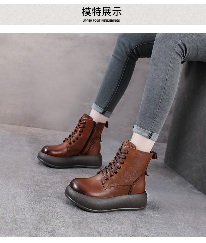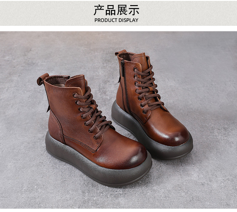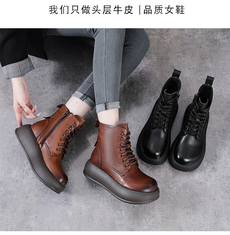 새로운 정품 가죽 마틴 부츠 여성용 빈티지 싱글 부츠 탑 레이어 소가죽 플랫폼 힐 바이커 부츠 두꺼운 바닥 레이스 업 짧은 부츠스토어 가기