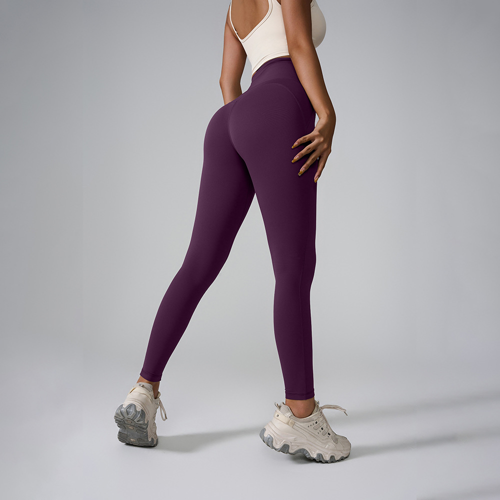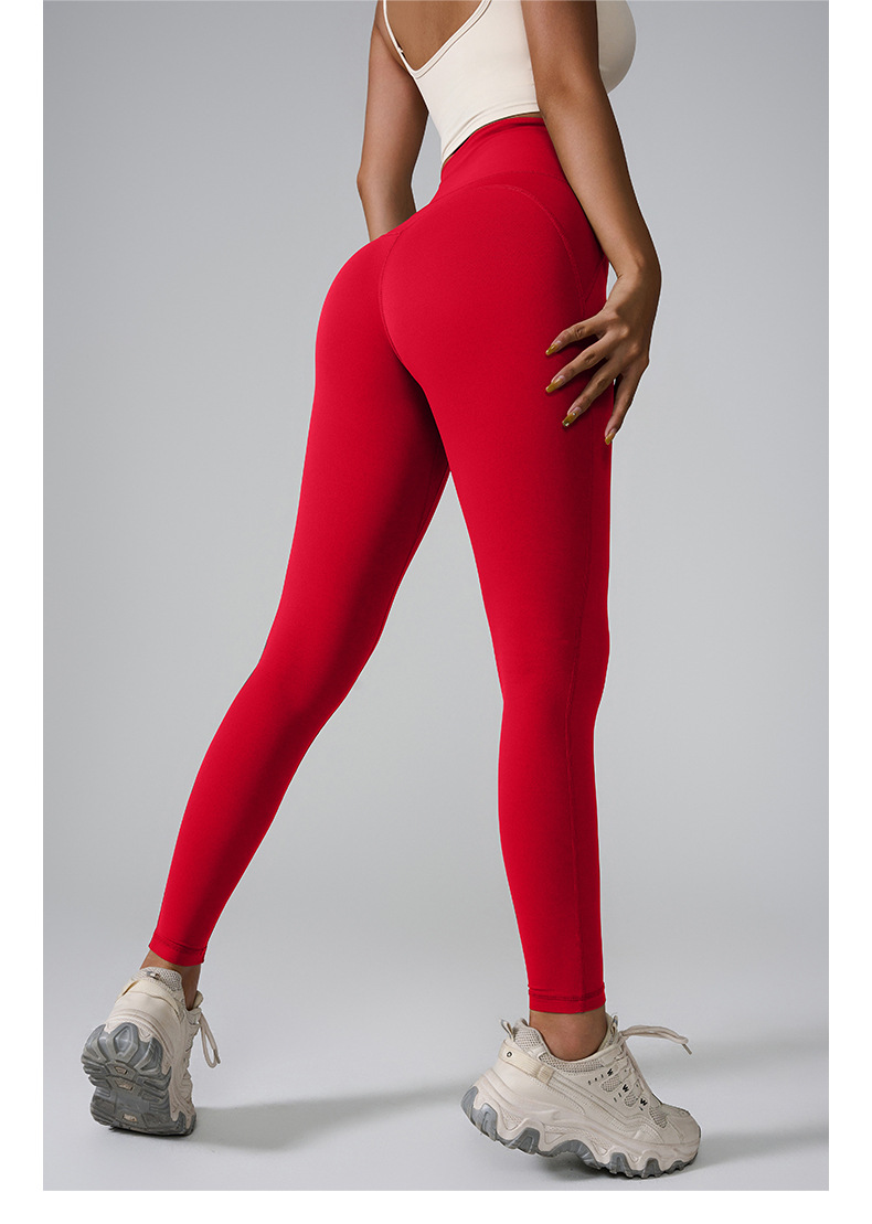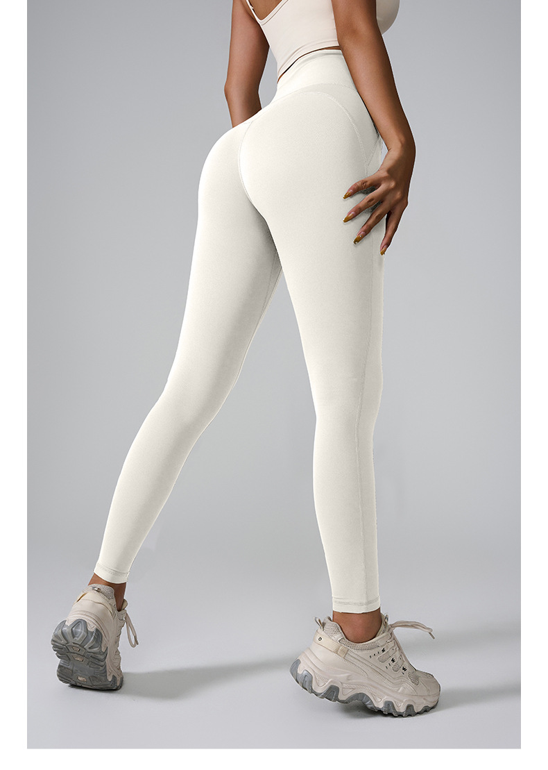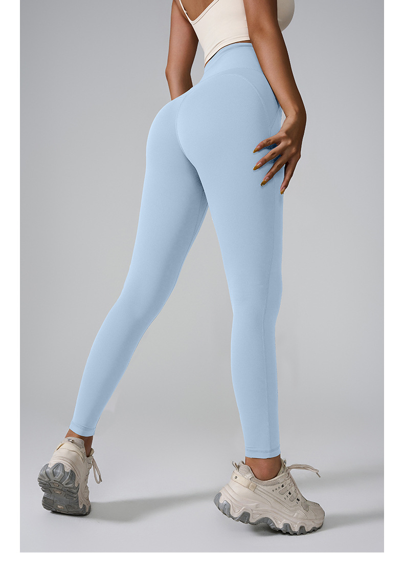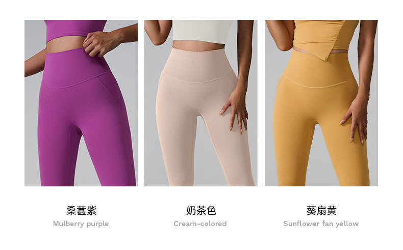 포켓이 있는 크로스보더 신형 스포츠 팬츠, 하이웨이스트, 심리스 누드 요가 팬츠, 쉐이핑 타이트 피치 팬츠