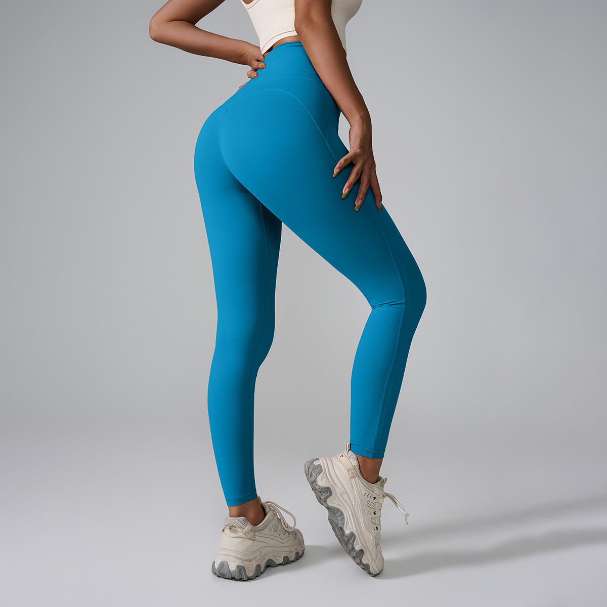 포켓이 있는 크로스보더 신형 스포츠 팬츠, 하이웨이스트, 심리스 누드 요가 팬츠, 쉐이핑 타이트 피치 팬츠스토어 가기