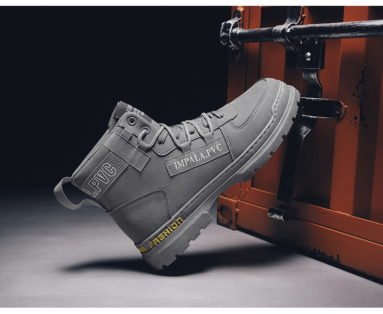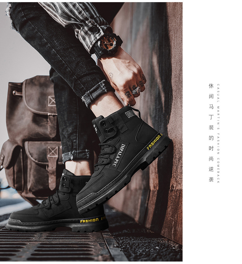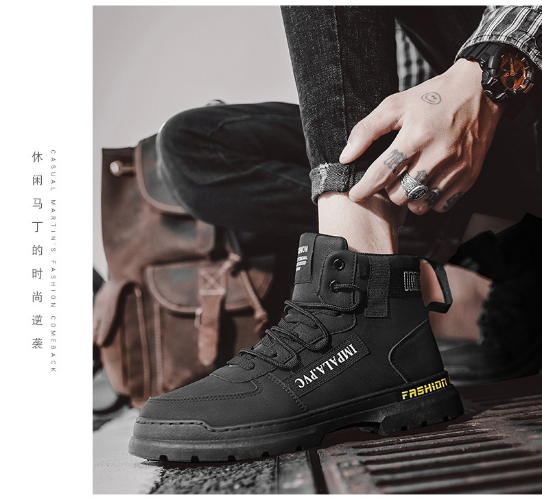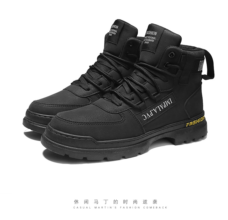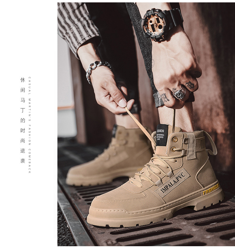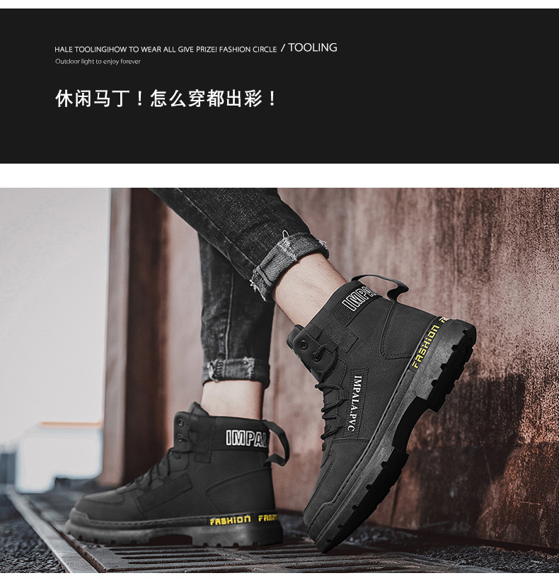 새로운 하이탑 높이 증가 남성 신발 2023 스포츠 캐주얼 작업복 부츠 레트로 단색 마틴 부츠 작업 신발 트렌디 신발스토어 가기