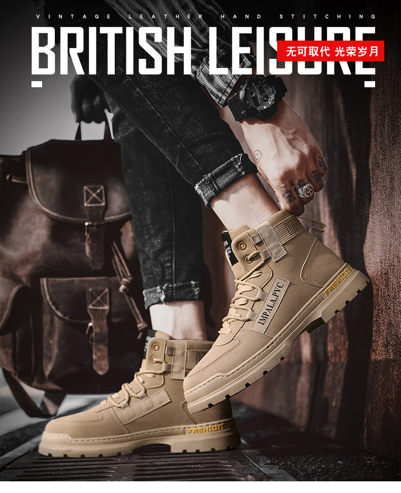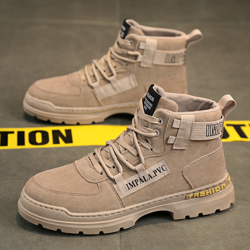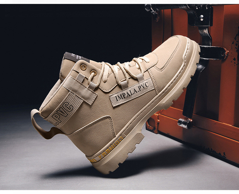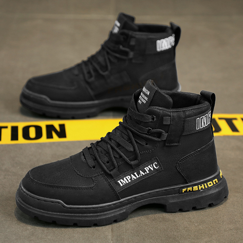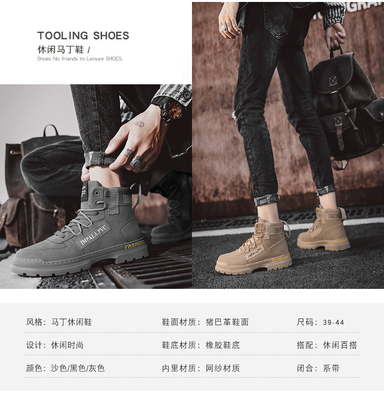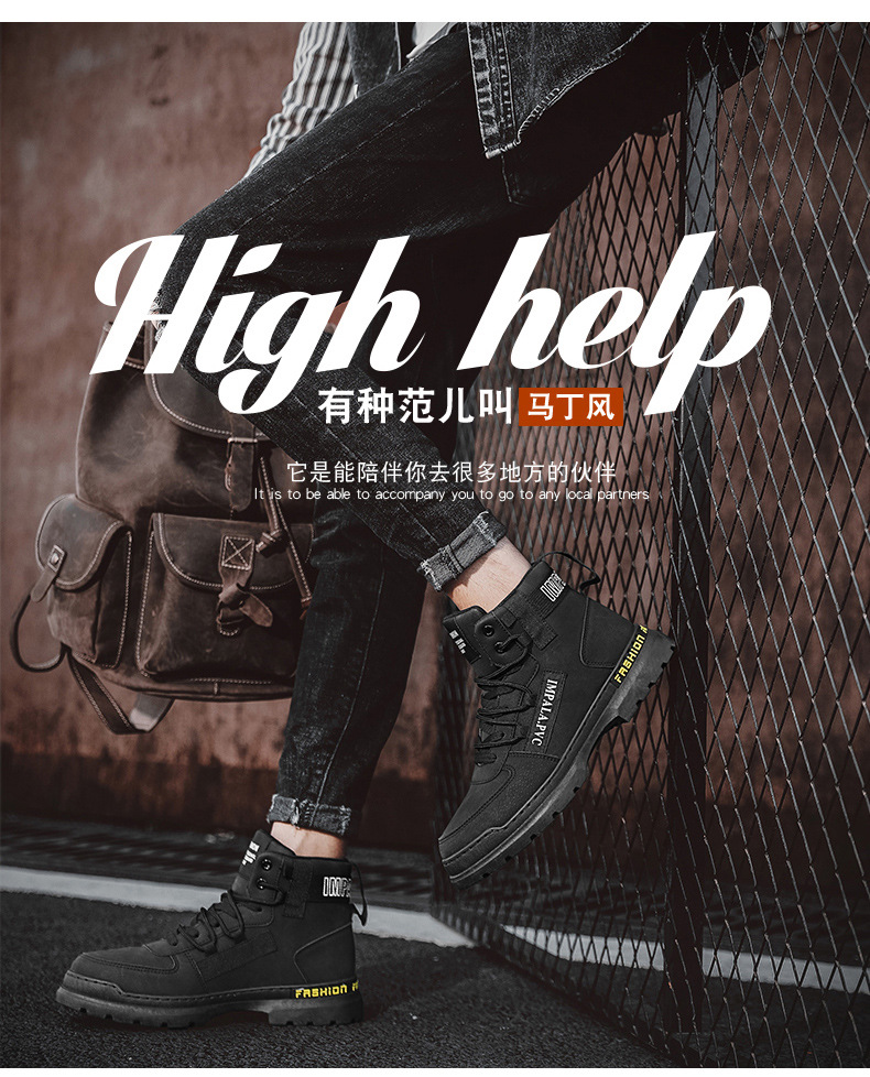 새로운 하이탑 높이 증가 남성 신발 2023 스포츠 캐주얼 작업복 부츠 레트로 단색 마틴 부츠 작업 신발 트렌디 신발스토어 가기