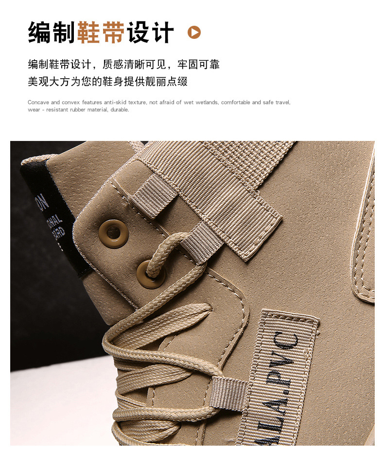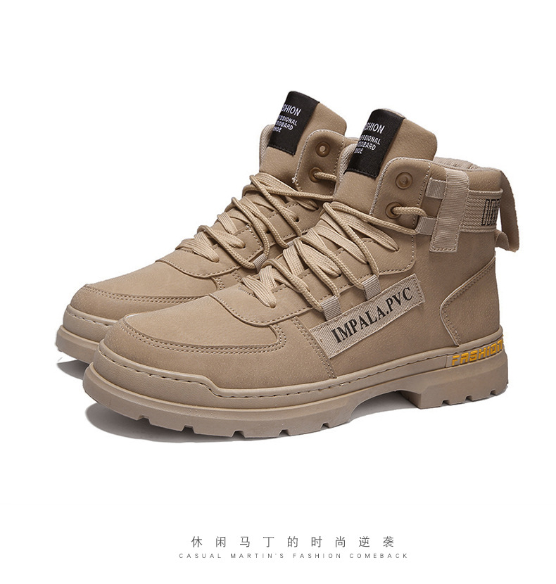 새로운 하이탑 높이 증가 남성 신발 2023 스포츠 캐주얼 작업복 부츠 레트로 단색 마틴 부츠 작업 신발 트렌디 신발