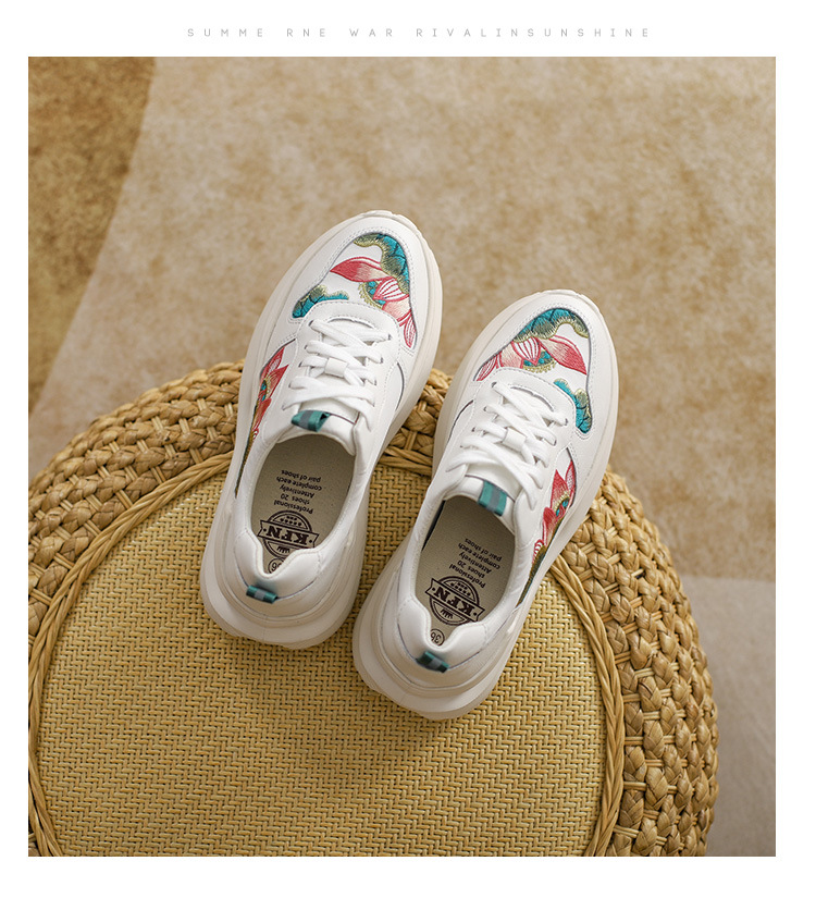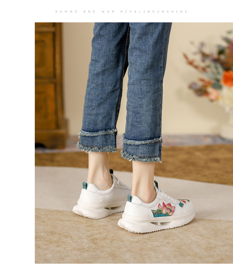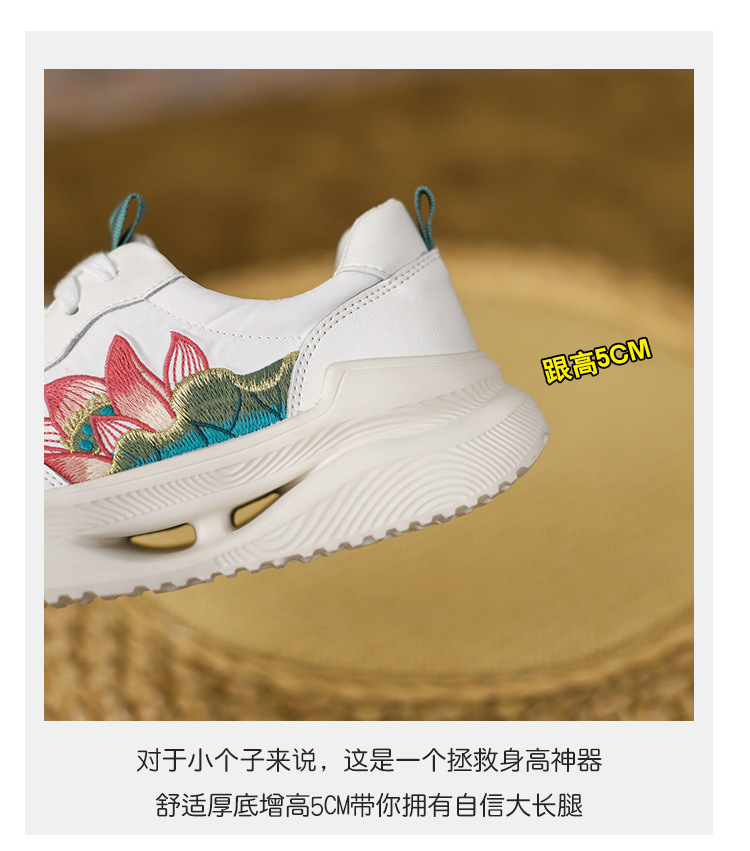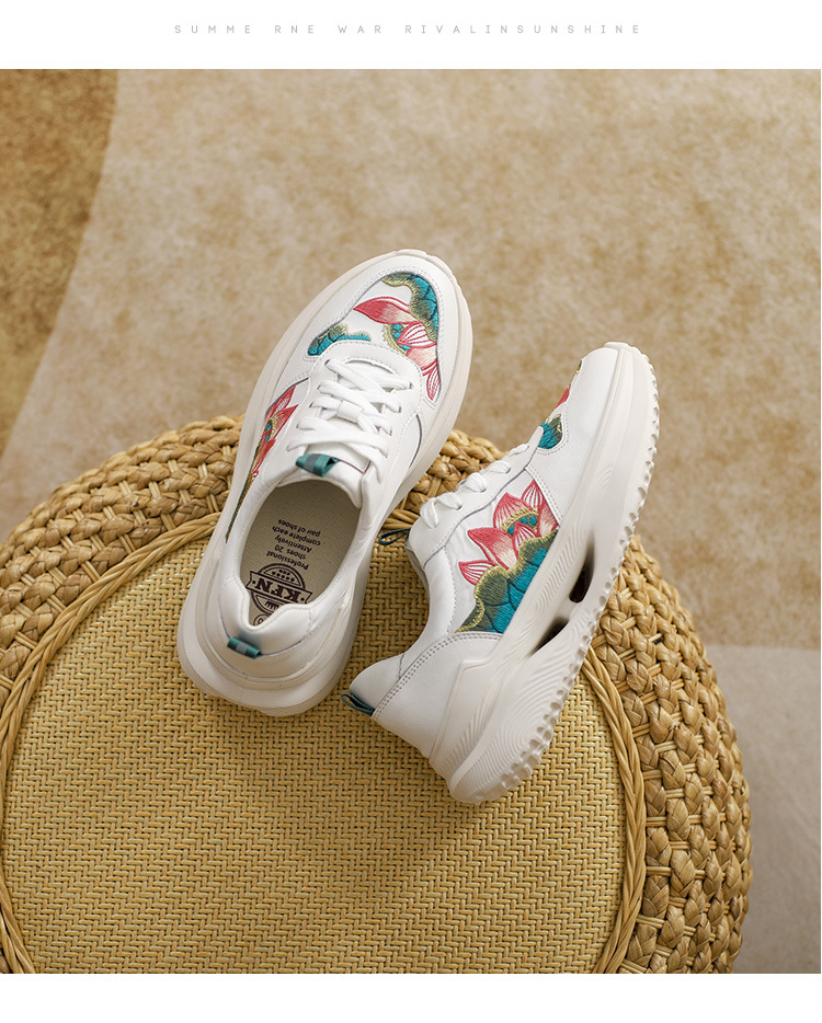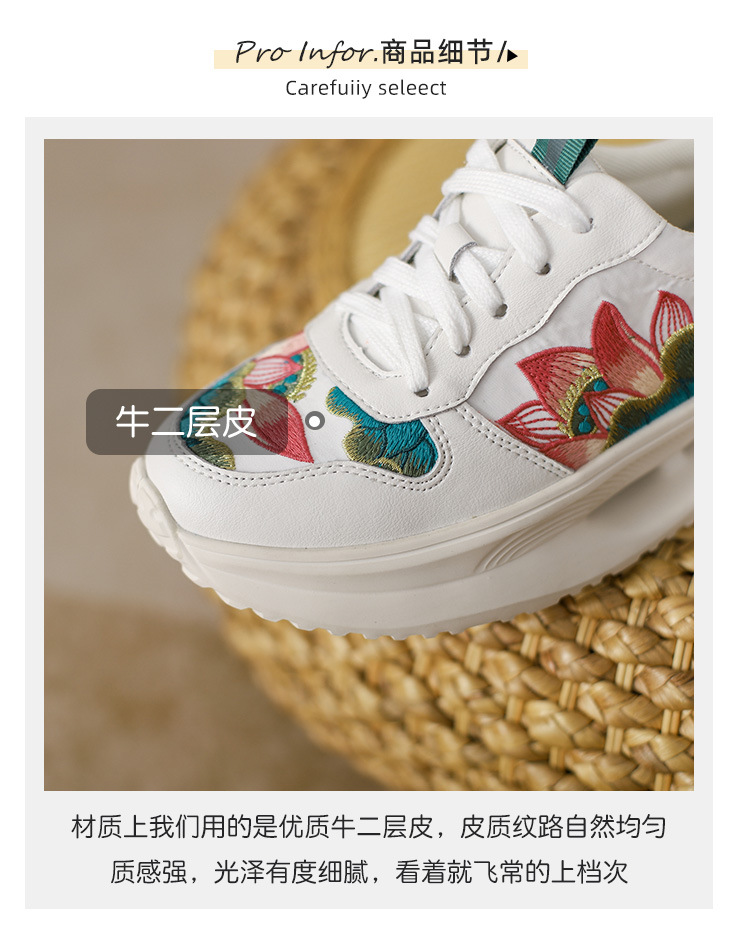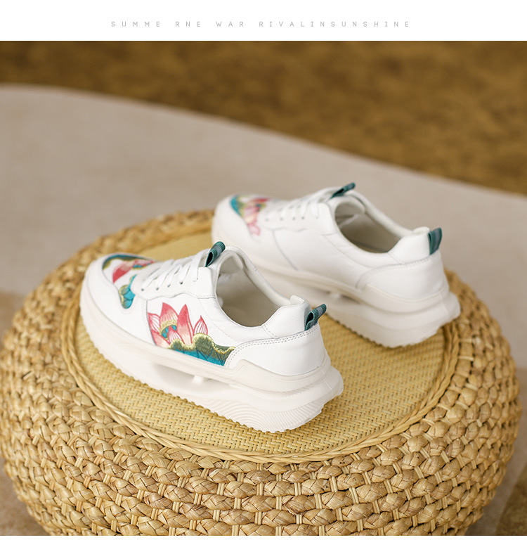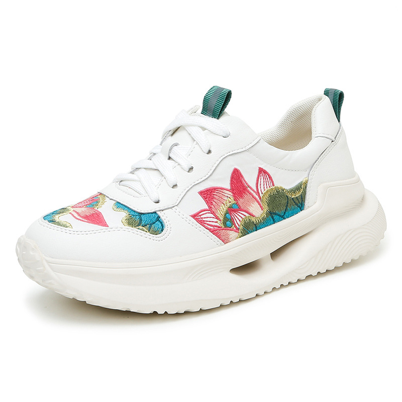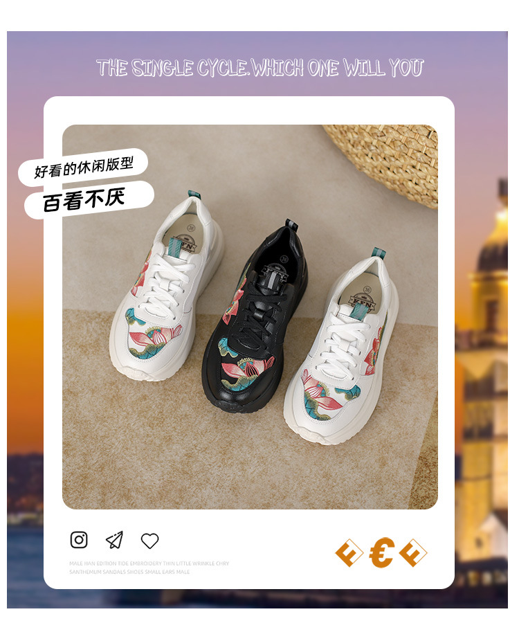 중국풍 가죽 자수 여성화, 중국 스타일 패션, 다용도, 럭셔리, 정교한 레이스업 스포츠 캐주얼 연꽃 두꺼운 밑창 신발스토어 가기