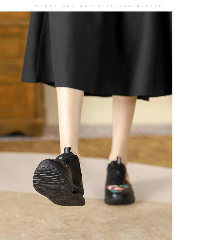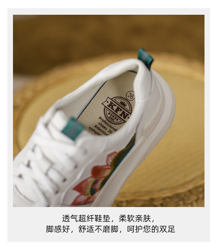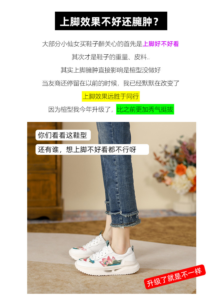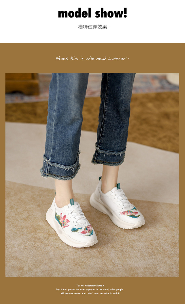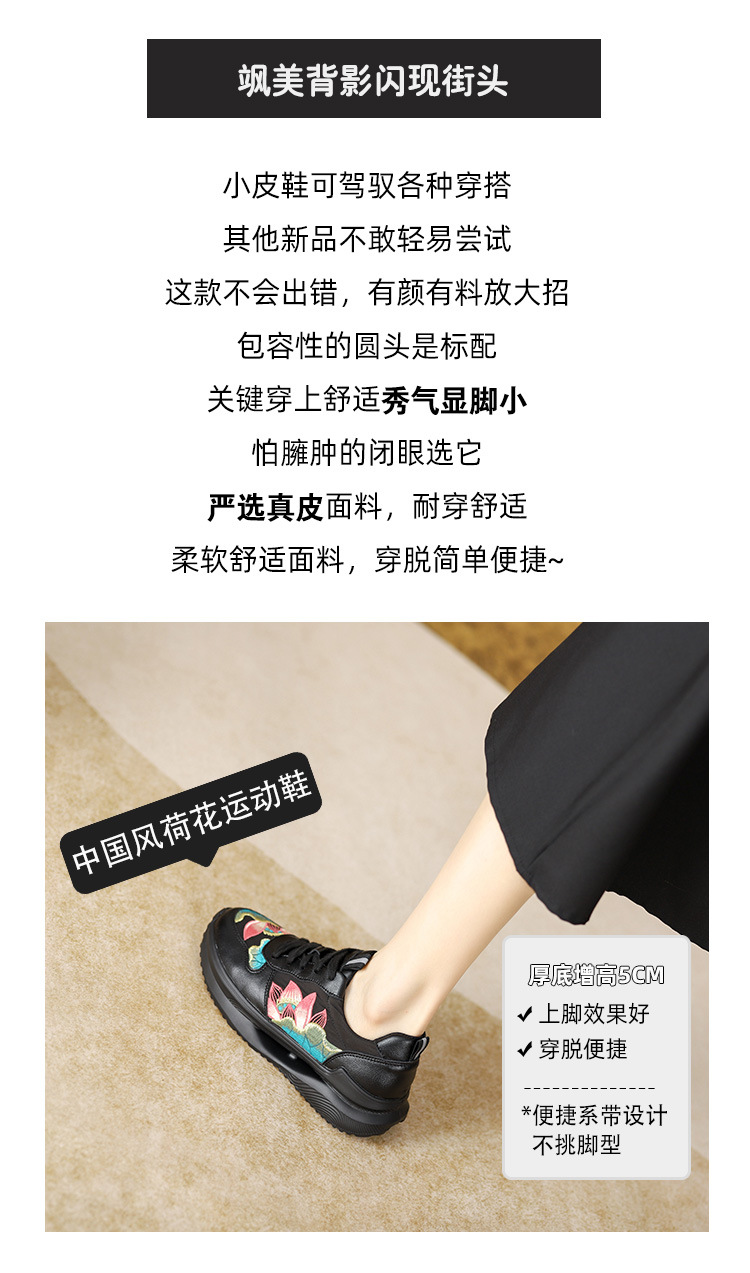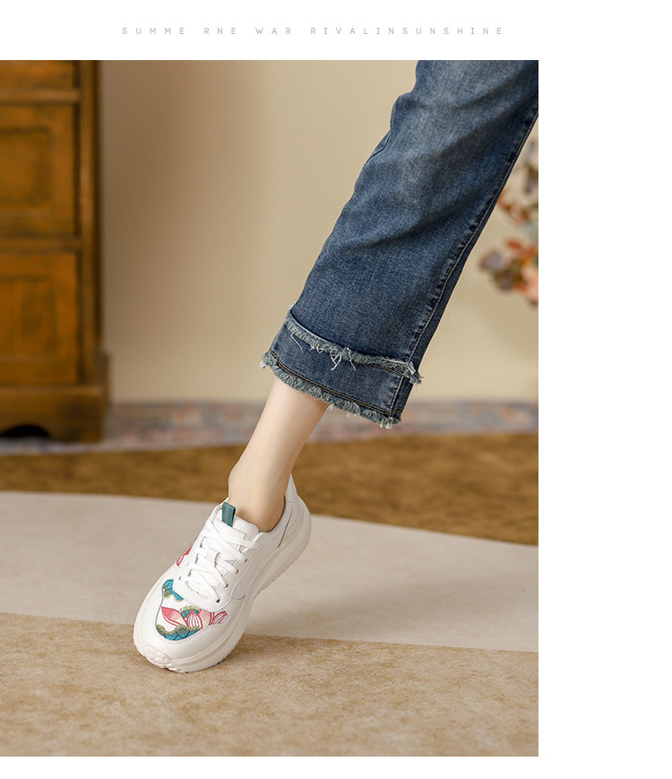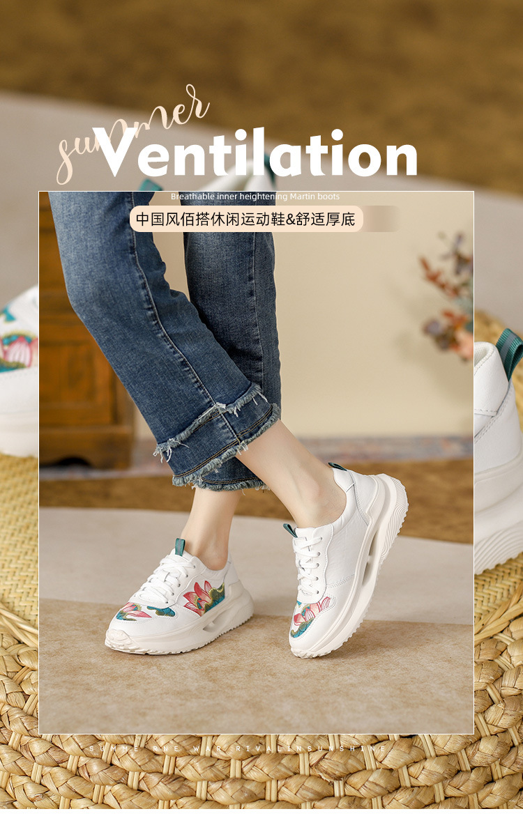 중국풍 가죽 자수 여성화, 중국 스타일 패션, 다용도, 럭셔리, 정교한 레이스업 스포츠 캐주얼 연꽃 두꺼운 밑창 신발스토어 가기