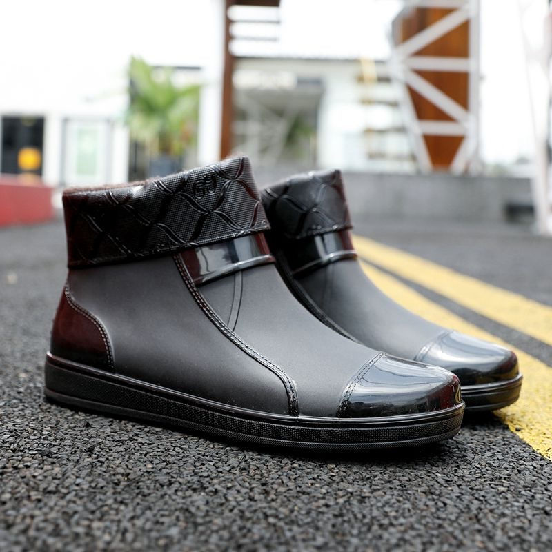 2023 새로운 레인 부츠 남자의 짧은 튜브 방수 고무 신발 레저 낚시 세차 작업 물 부츠 미끄럼 방지 기모 레인 부츠