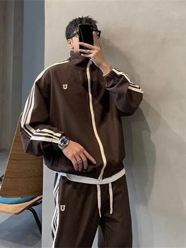 조수 브랜드 남성 캐주얼 스포츠 세트 2023 봄과 가을 새로운 고급 감각 Ruffian 잘 생긴 재킷 패션 남성 세트