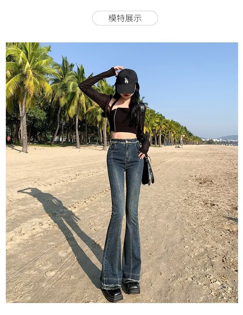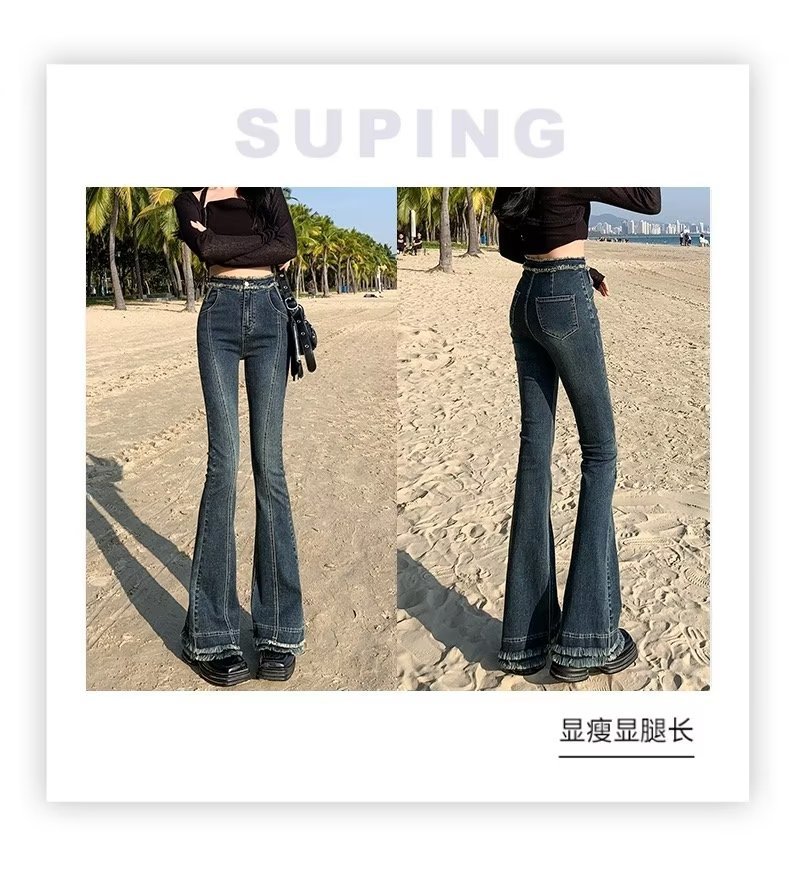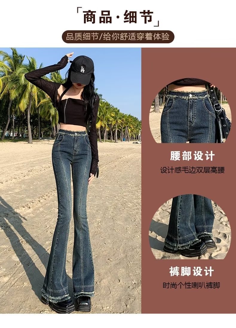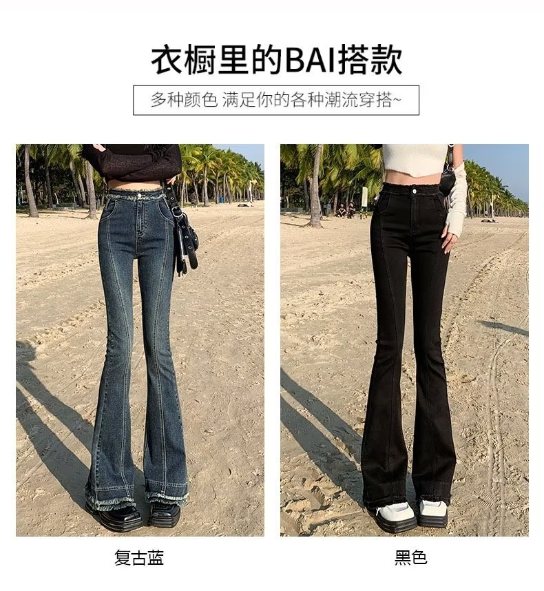 아메리칸 스타일 레트로 마이크로-라르 청바지 여성의 가을 2023 새로운 하이 웨이스트 슬림 룩 작은 말굽 러프 플레어 팬츠스토어 가기