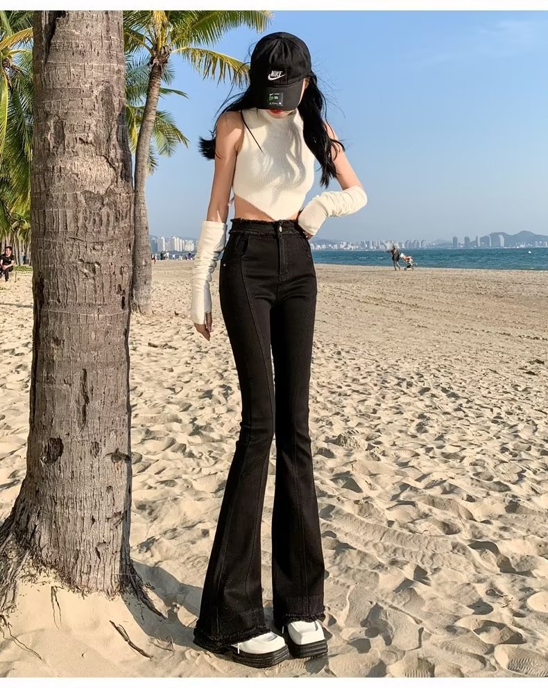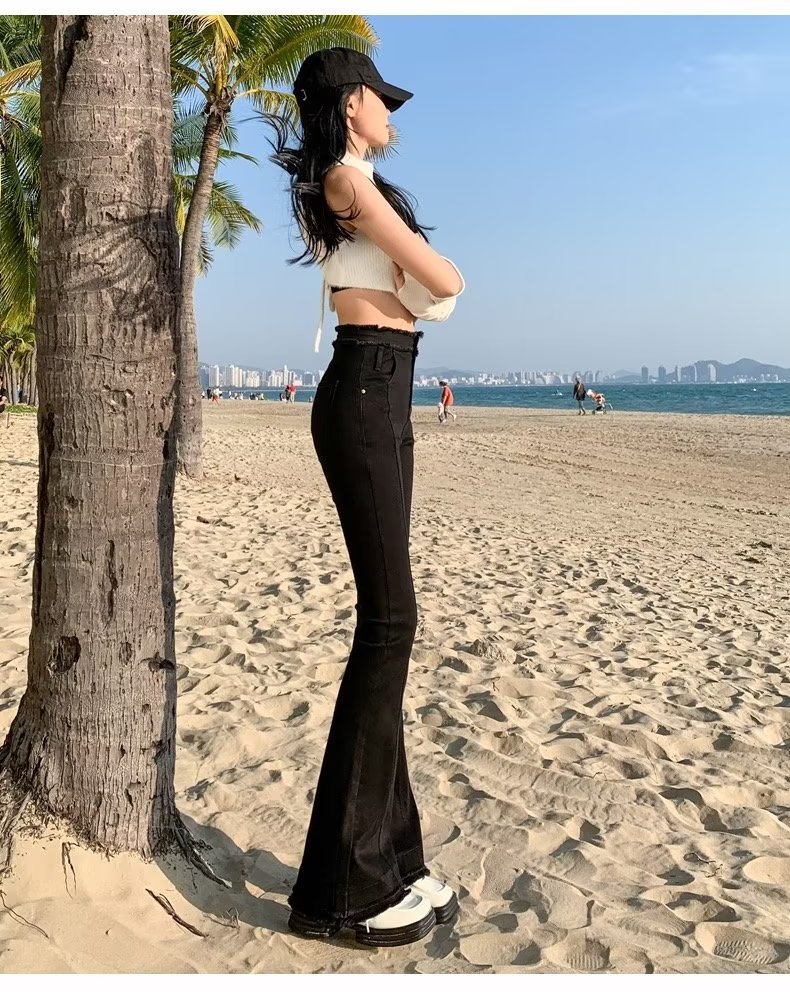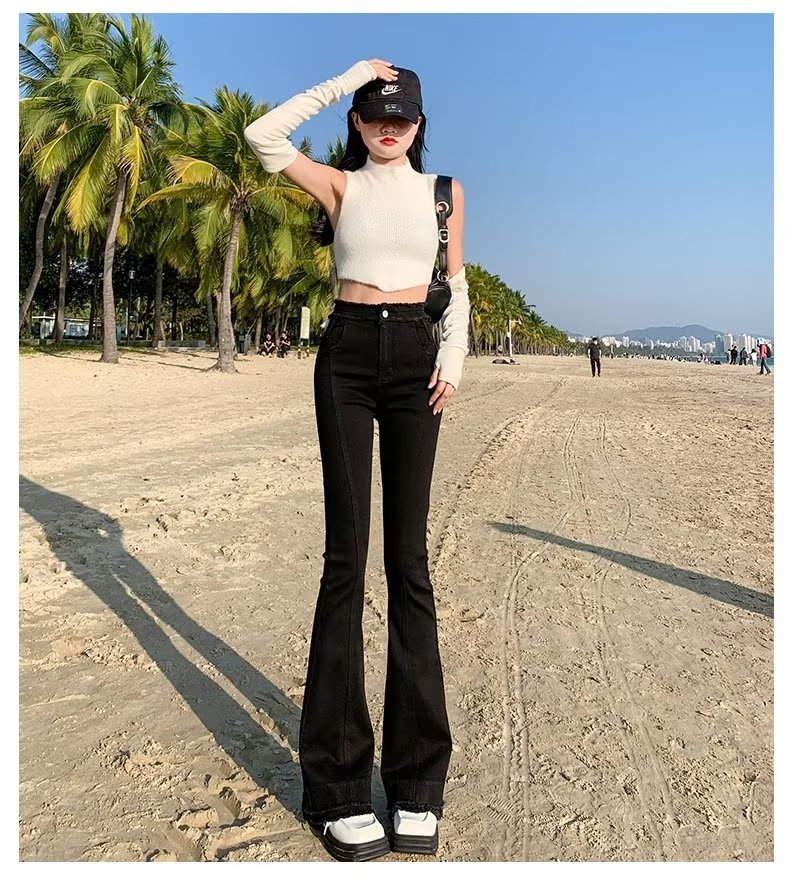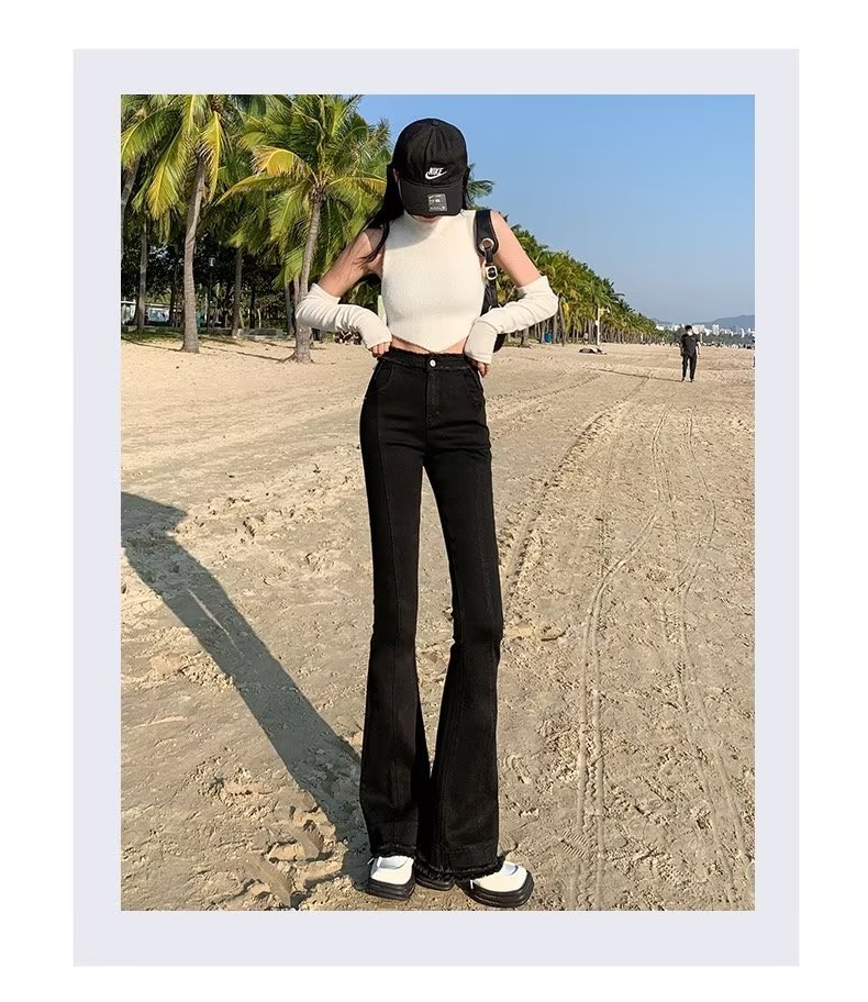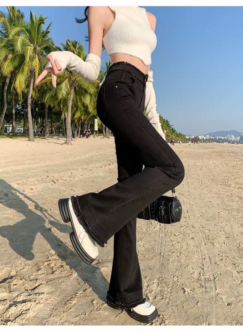 아메리칸 스타일 레트로 마이크로-라르 청바지 여성의 가을 2023 새로운 하이 웨이스트 슬림 룩 작은 말굽 러프 플레어 팬츠스토어 가기