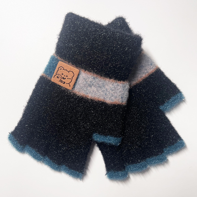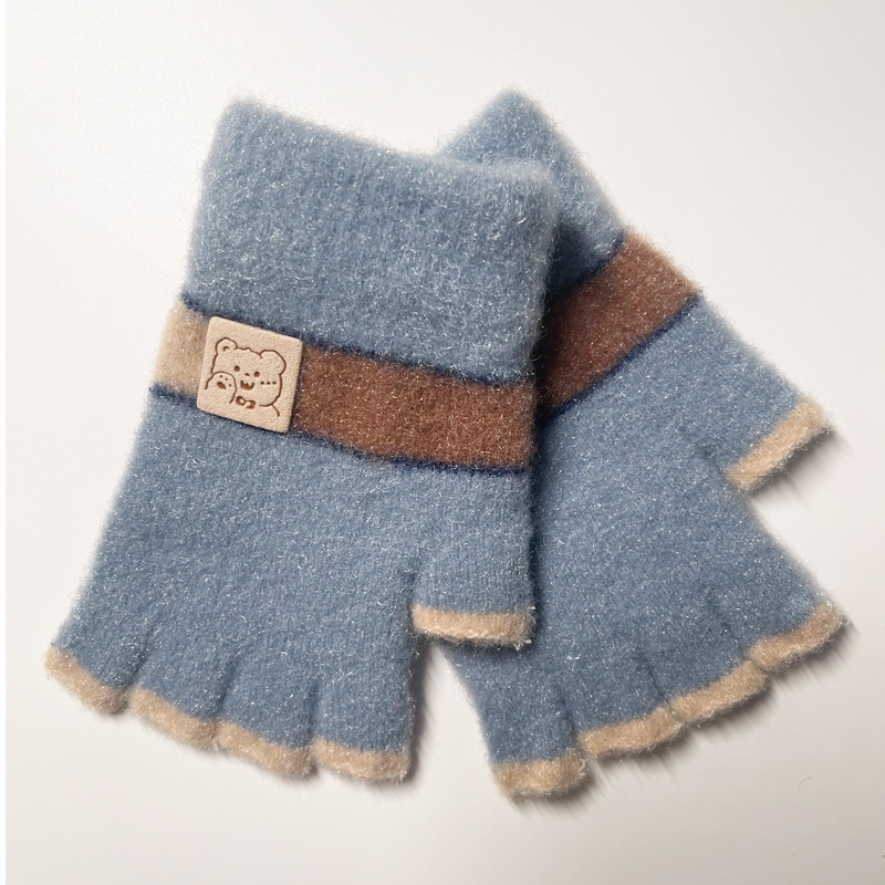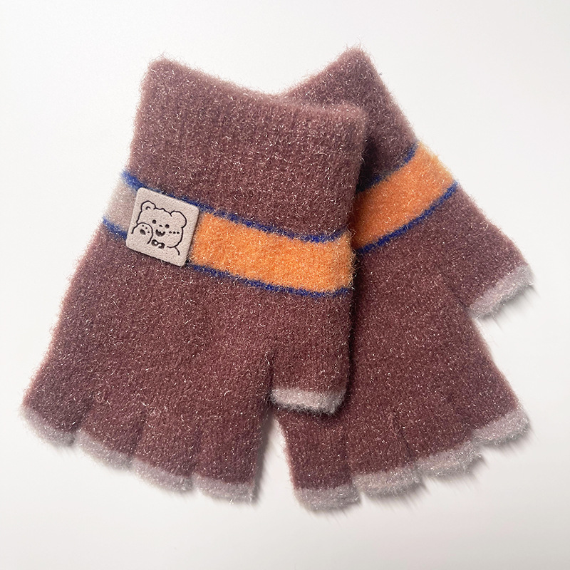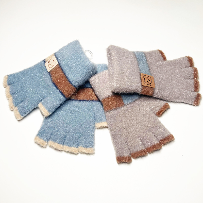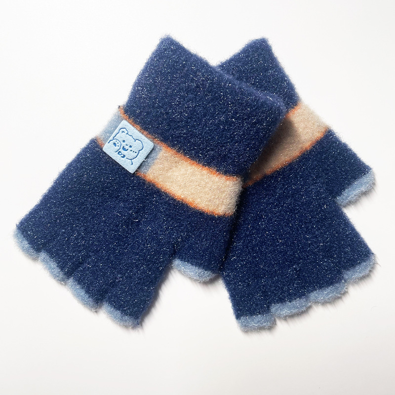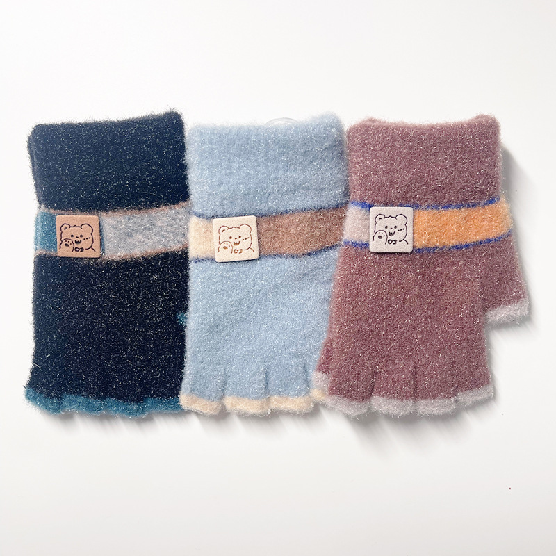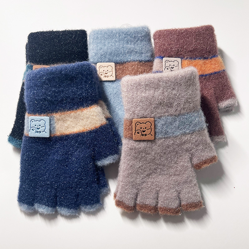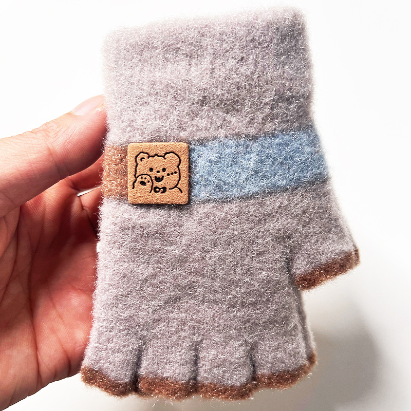 어린이 장갑 가을과 겨울 따뜻한 양모 니트 귀여운 봉제 초등 학생들은 새로운 반 손가락 장갑을 쓰는 법을 배웁니다.