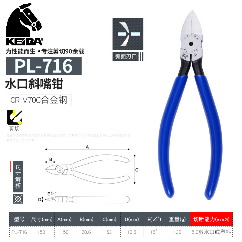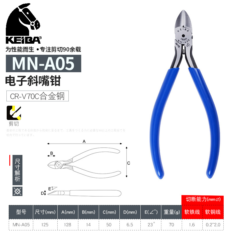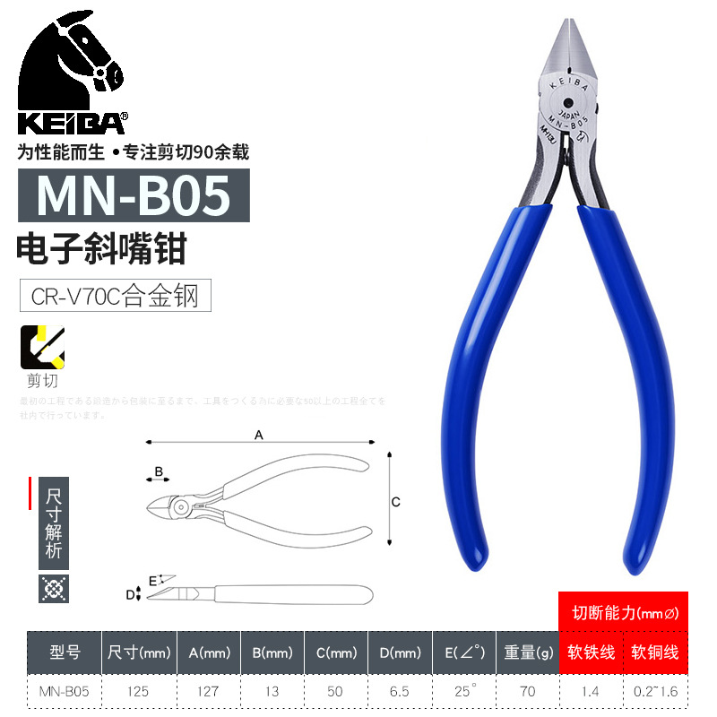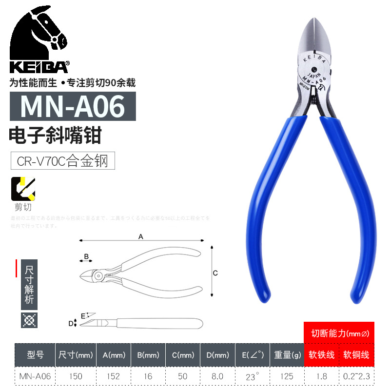 일본 수입 KEIBA 브랜드 전자 가위 MN-A05 비스듬한 입 물 입 플라이어 플라스틱 가위 펜치 PL-726
