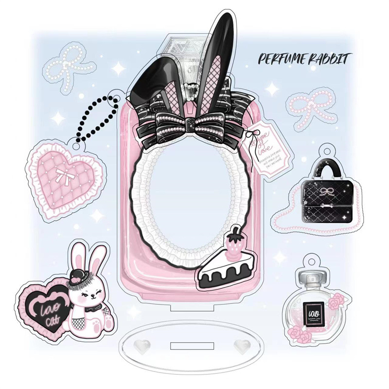 오리지널 향수 토끼 스탠딩 카드 데스크탑 하이 레벨 포토 프레임 아크릴 DIY 소형 카드 포토 카드 3 인치 스탠딩 카드