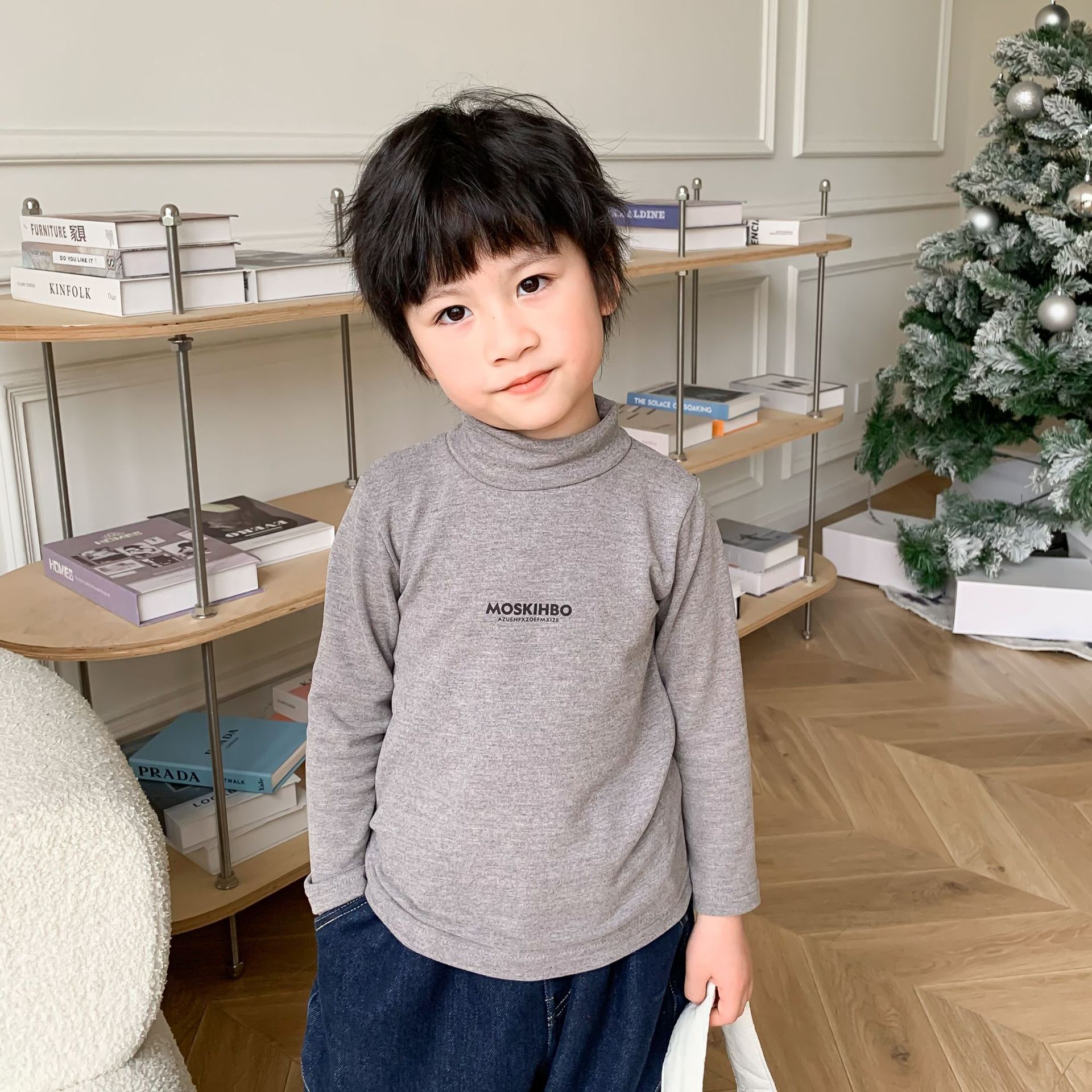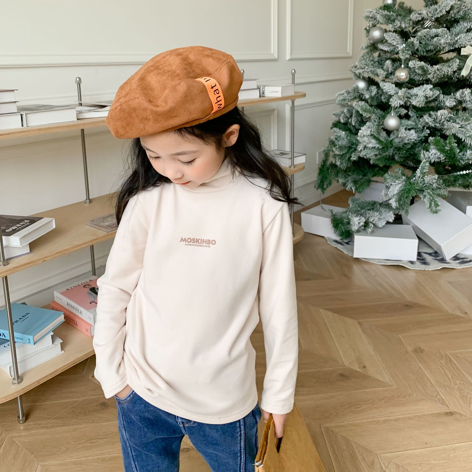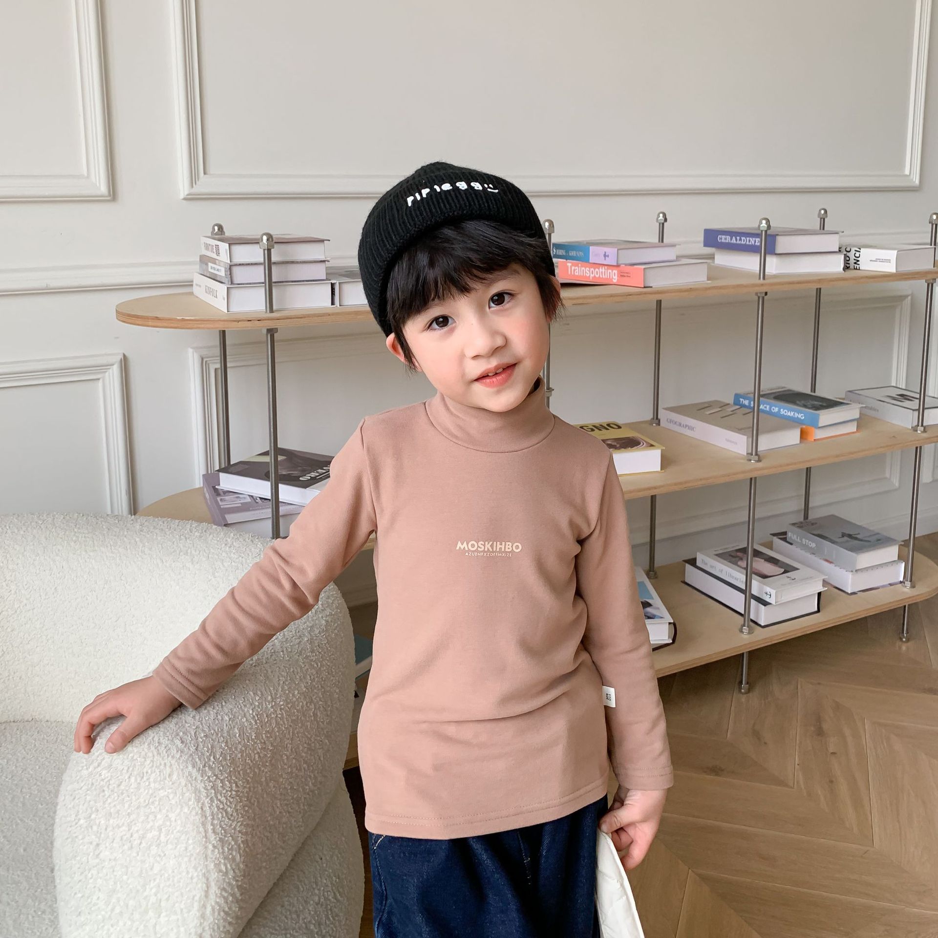 한국식 가을과 겨울 어린이 호주 벨벳베이스 셔츠 소년 소녀 하프 하이 칼라 편지 인쇄 탑 아동용 긴팔 티셔츠스토어 가기