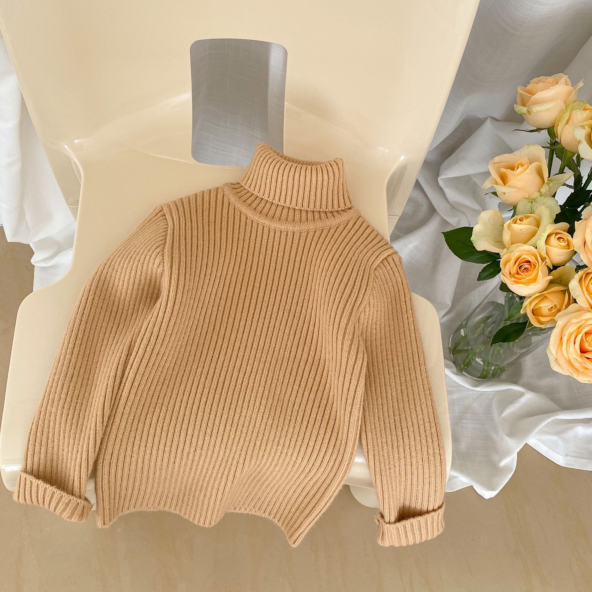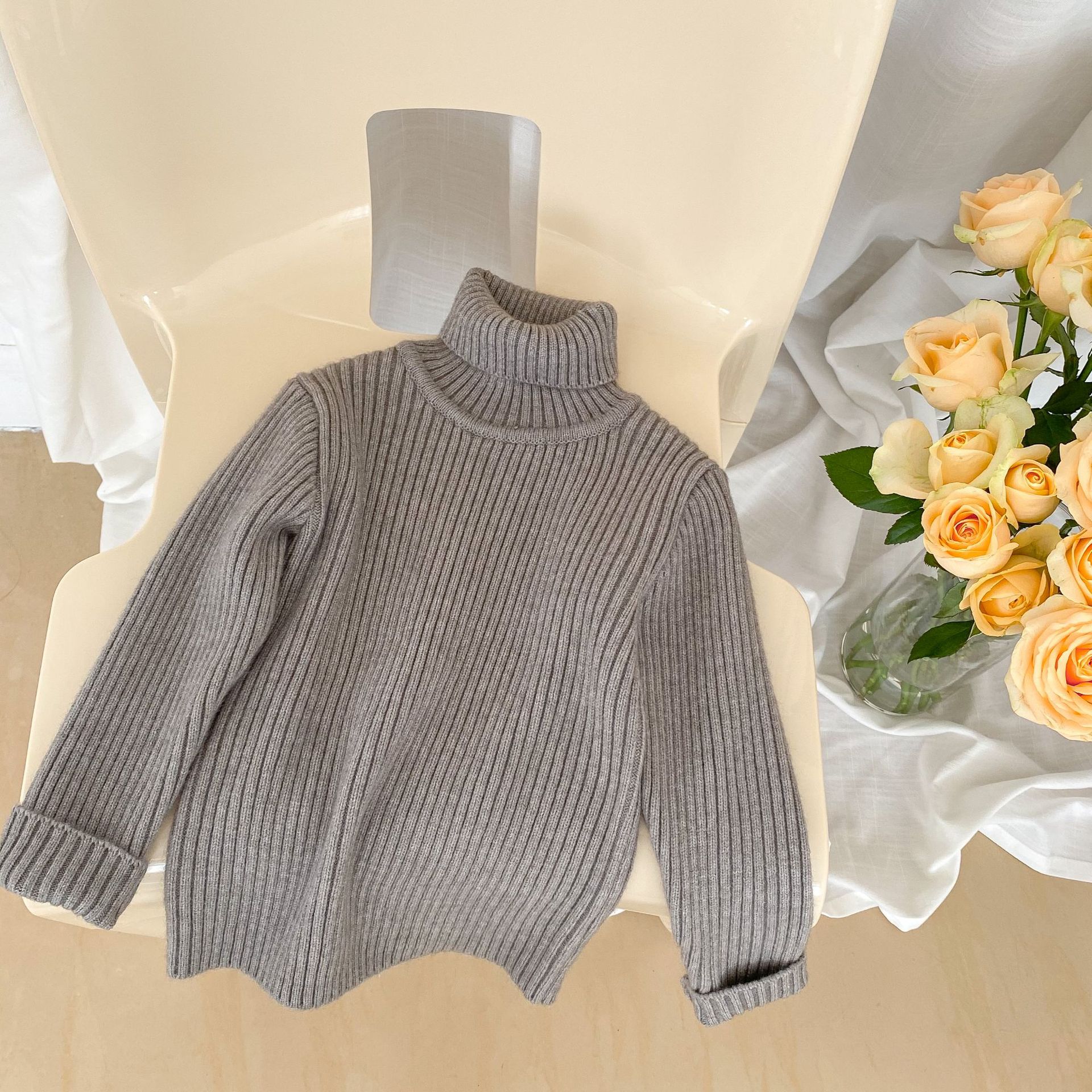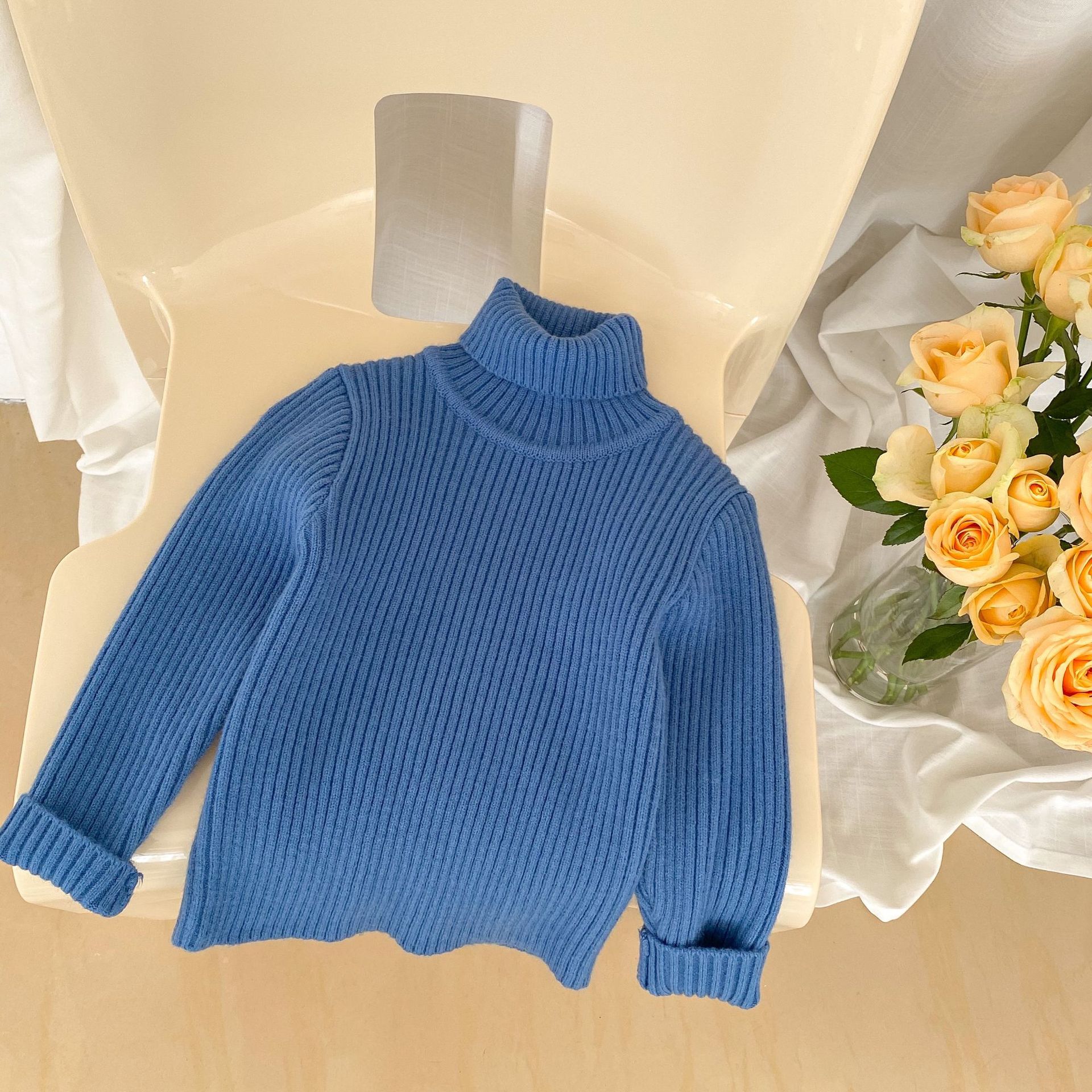 2023 겨울 어린이 터틀넥 스웨터 소년과 소녀 베이비 솔리드 컬러 두꺼운 풀오버 편안한 니트 바닥 셔츠스토어 가기