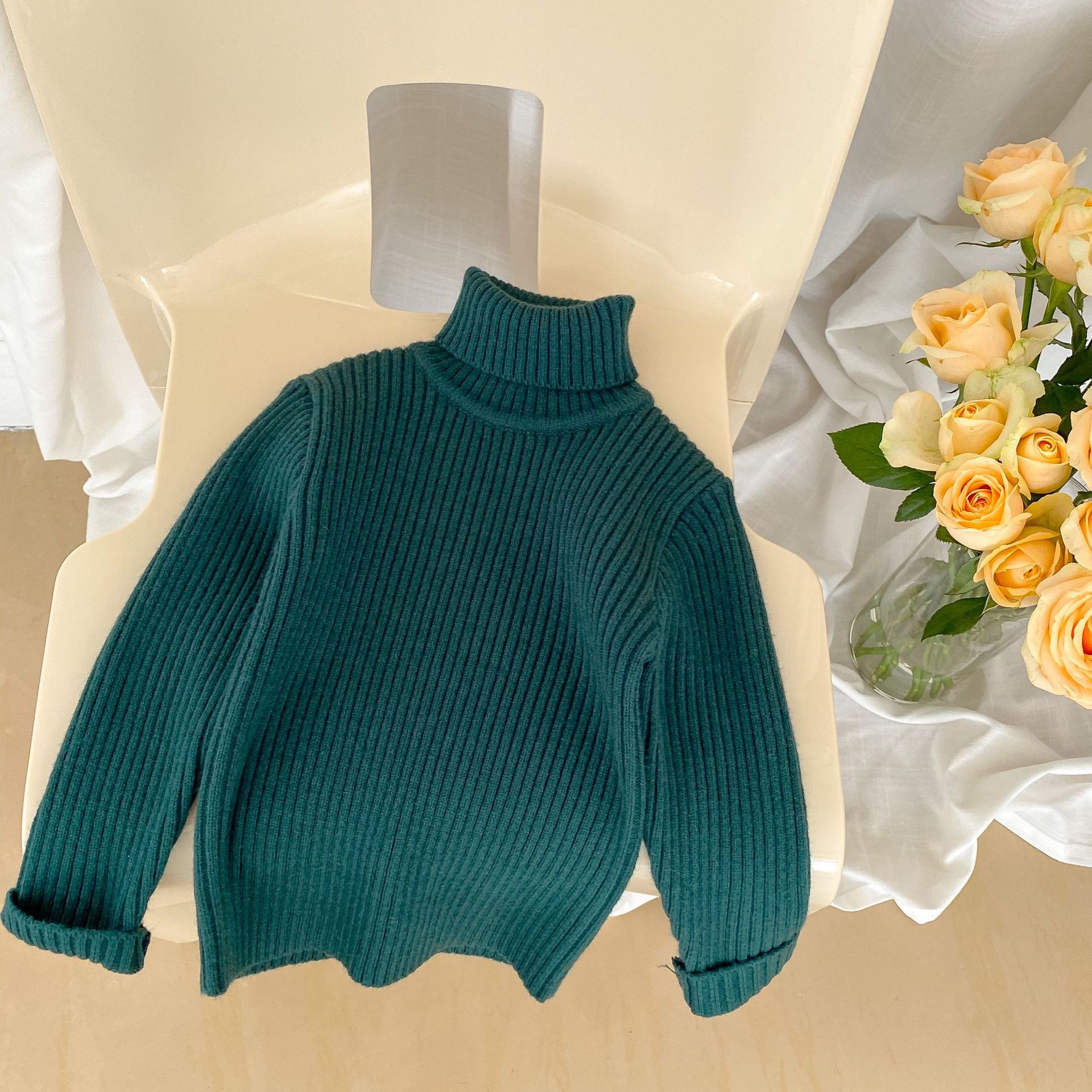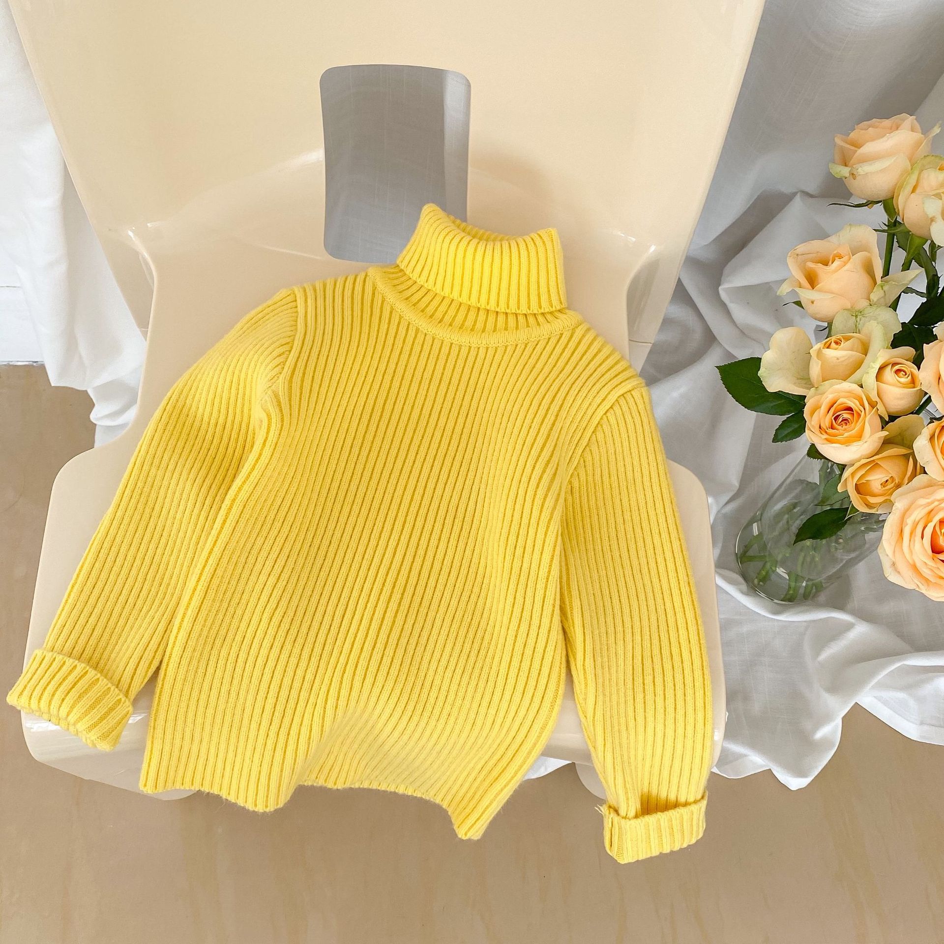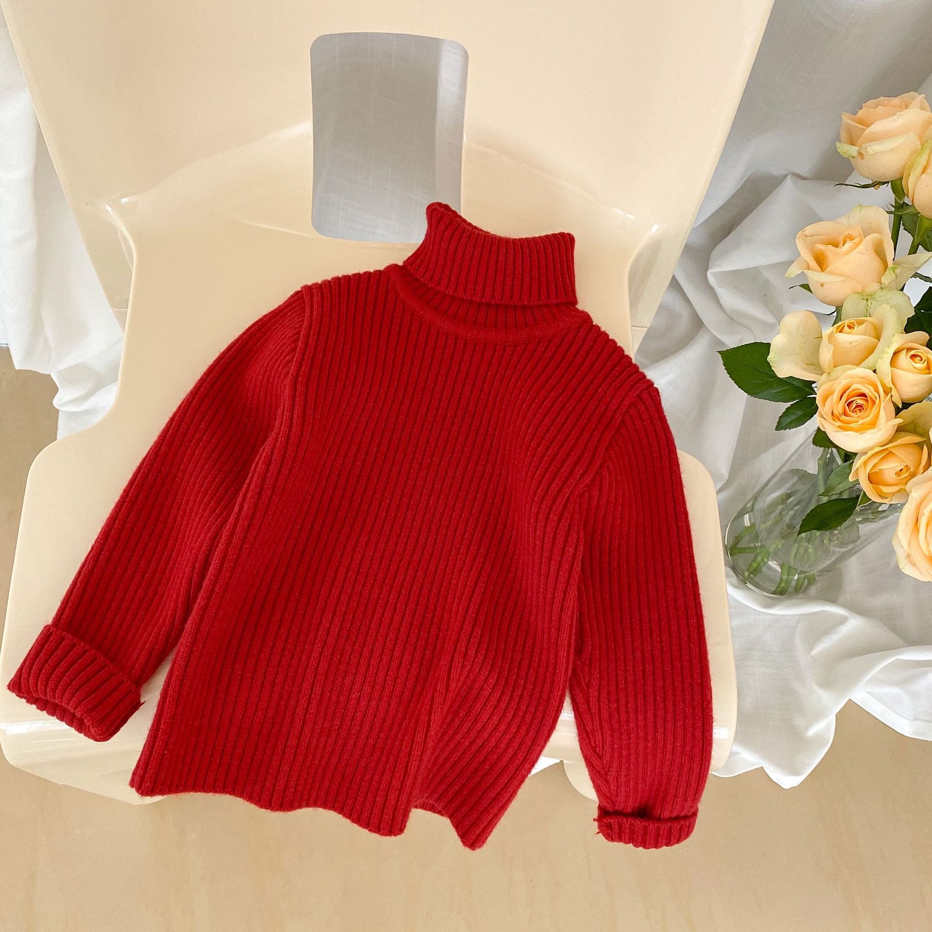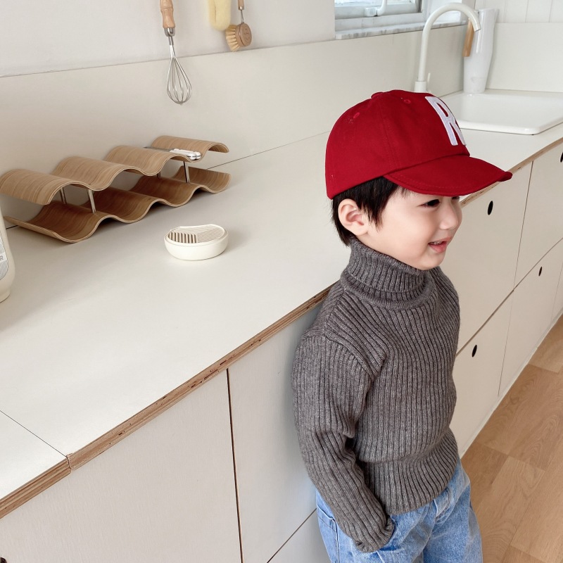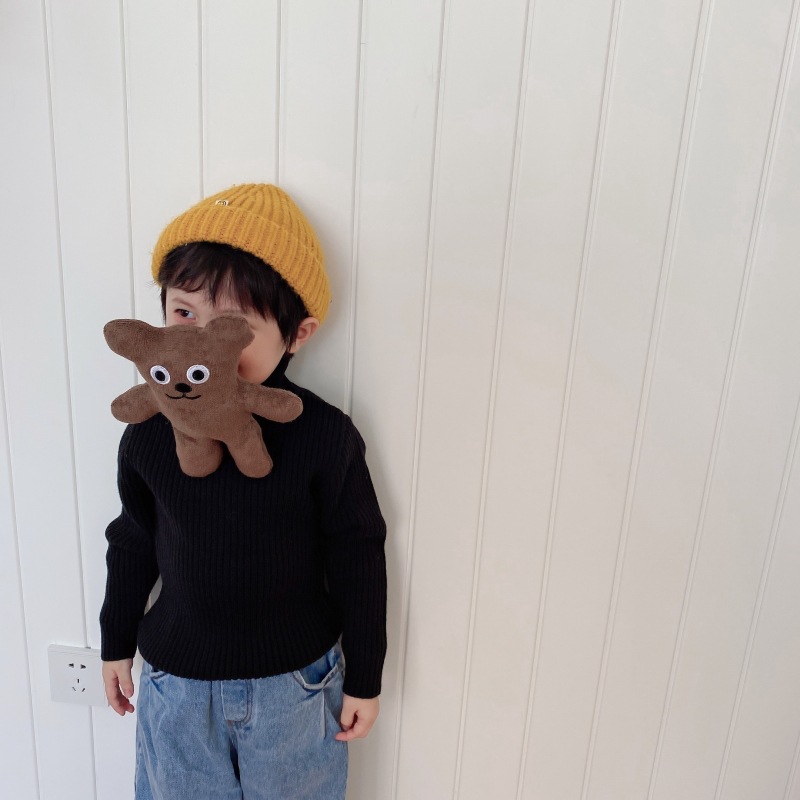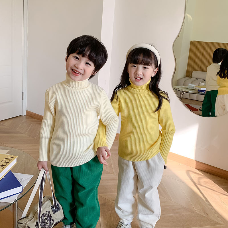 2023 겨울 어린이 터틀넥 스웨터 소년과 소녀 베이비 솔리드 컬러 두꺼운 풀오버 편안한 니트 바닥 셔츠