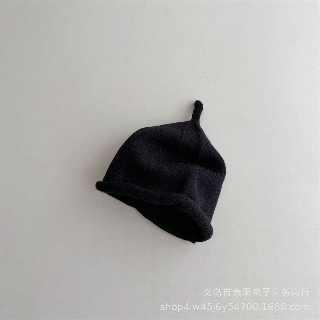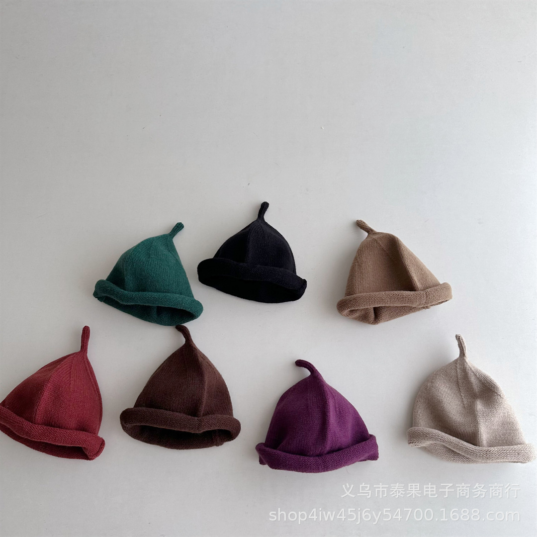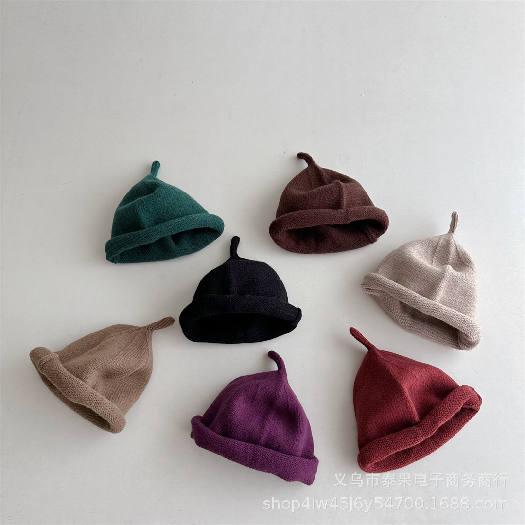 가을과 겨울 새로운 어린이의 귀여운 단색 컬 울 모자 소년과 어린이의 독특한 오목 따뜻한 니트 모자 유행스토어 가기