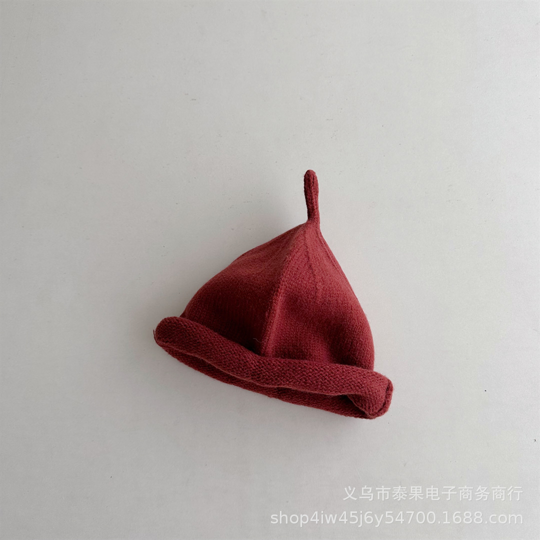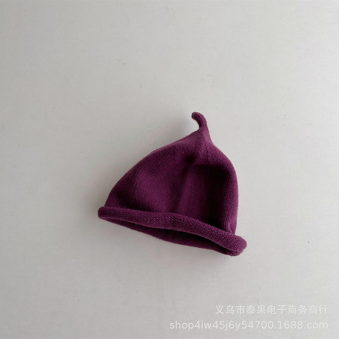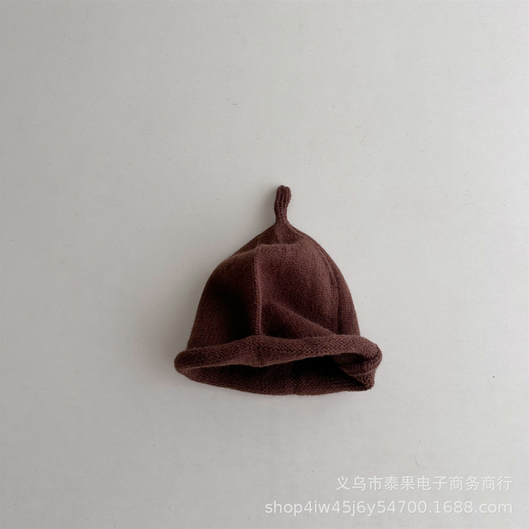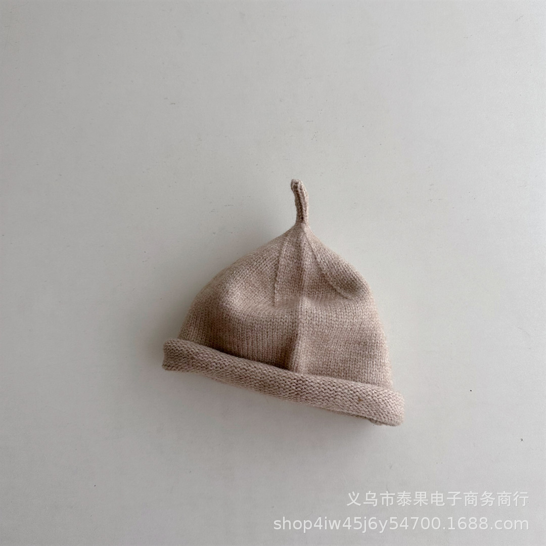 가을과 겨울 새로운 어린이의 귀여운 단색 컬 울 모자 소년과 어린이의 독특한 오목 따뜻한 니트 모자 유행스토어 가기