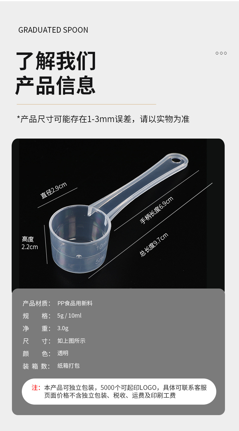 공장 직접 5g/10 ml 플라스틱 측정 스푼 식품 등급 파우더 스푼 꿀 스푼 분유 스푼 단백질 파우더 스푼 스푼스토어 가기
