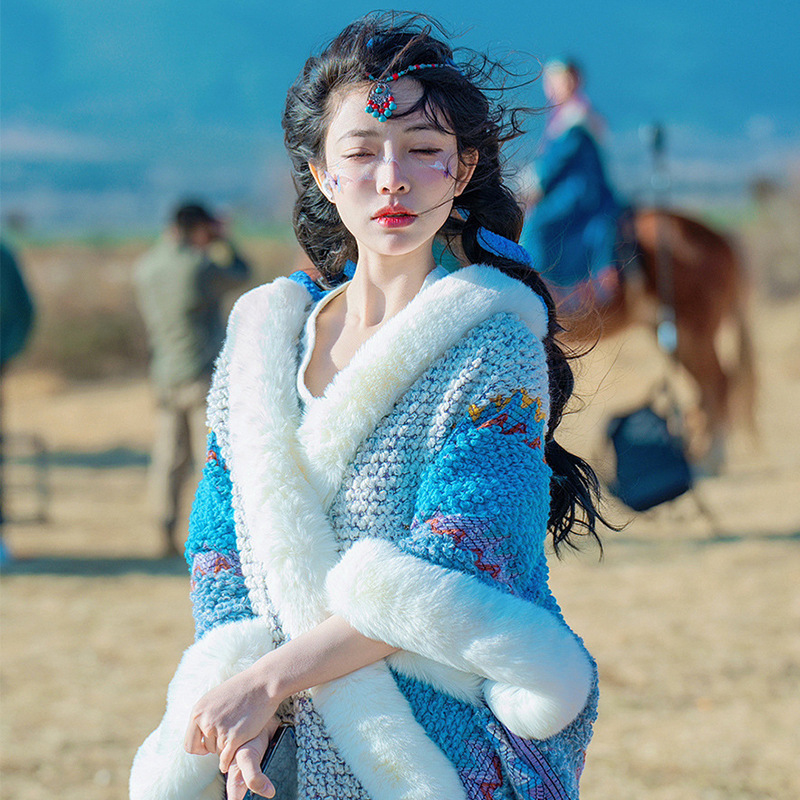 모피 칼라 민족 스타일 숄 윈난 티베트 여행복 담요 두꺼운 망토 패션 조커 망토 도매스토어 가기