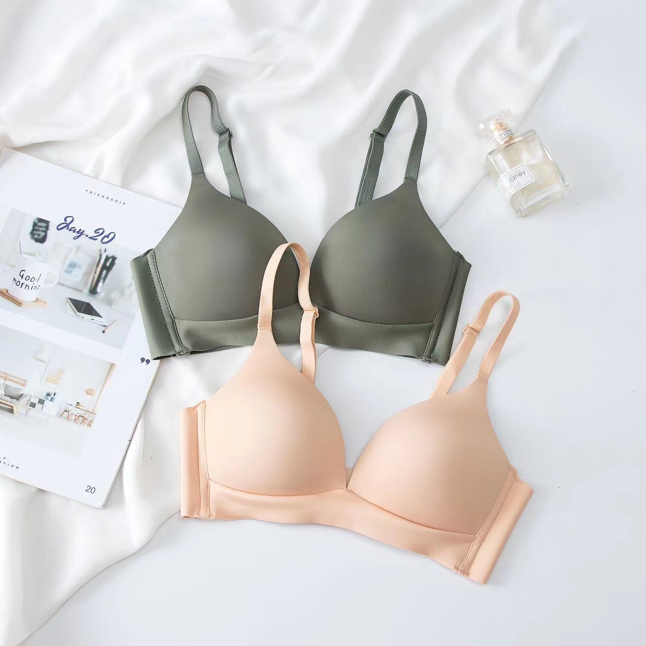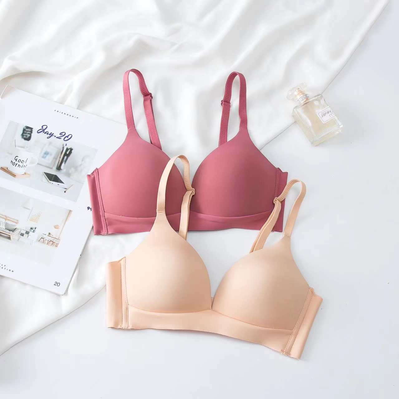 일본식 가볍고 얇은 옷 흔적없는 속옷 여성용 비 스틸 링 큰 가슴 작은 손바닥재 삼각형 컵 광택 브래지어스토어 가기